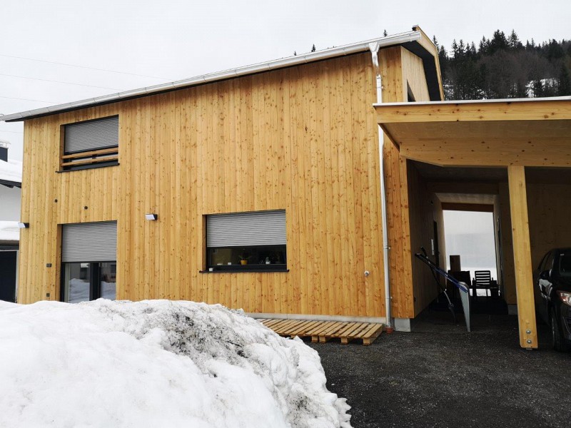 Auf das Wesentliche reduziert! In Hochfilzen (Tirol), in sonniger ruhiger Lage entstand das Einfamilienhaus in Massivholzbauweise. Die größte Aufgabe war es die Verkehrswege im Haus so gering wie möglich zu halten und dadurch die Räumlichkeiten - trotz der geringen Wohnnutzlfäche von knapp unter 120m² - so groß wie möglich zu gestalten. Auf einen Keller und Dachboden wurde ebenso komplett verzichtet - dafür ein ca. 25m² großer Schuppen, der an das Carport anschließt, errichtet. Alle Böden wurden mit Feinstein belegt um auch hier das Konzept der Natürlichkeit weiter zu verfolgen. In der gesamten Planung und Umsetzung stand die Verbundenheit zur Natur sowie eine möglichst optimale Ausnutzungder Kosten/m² im Vordergrund.