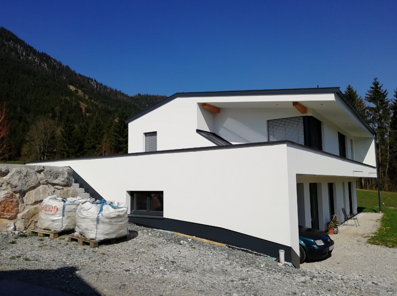 Das Haus wurde in Massivbauweise (EG Stahlbeton, OG Ziegel) errichtet. Die gesamten Außenwände (inkl. Garage) sowie die Perimeterdämmung wurde mit 20cm (Styropor) ausgeführt.Das Dach wurde mit 34cm Zellulose Einblasdämmung gedämmt.Alle Fenster verfügen über Rollos für eine aktive Beschattung.