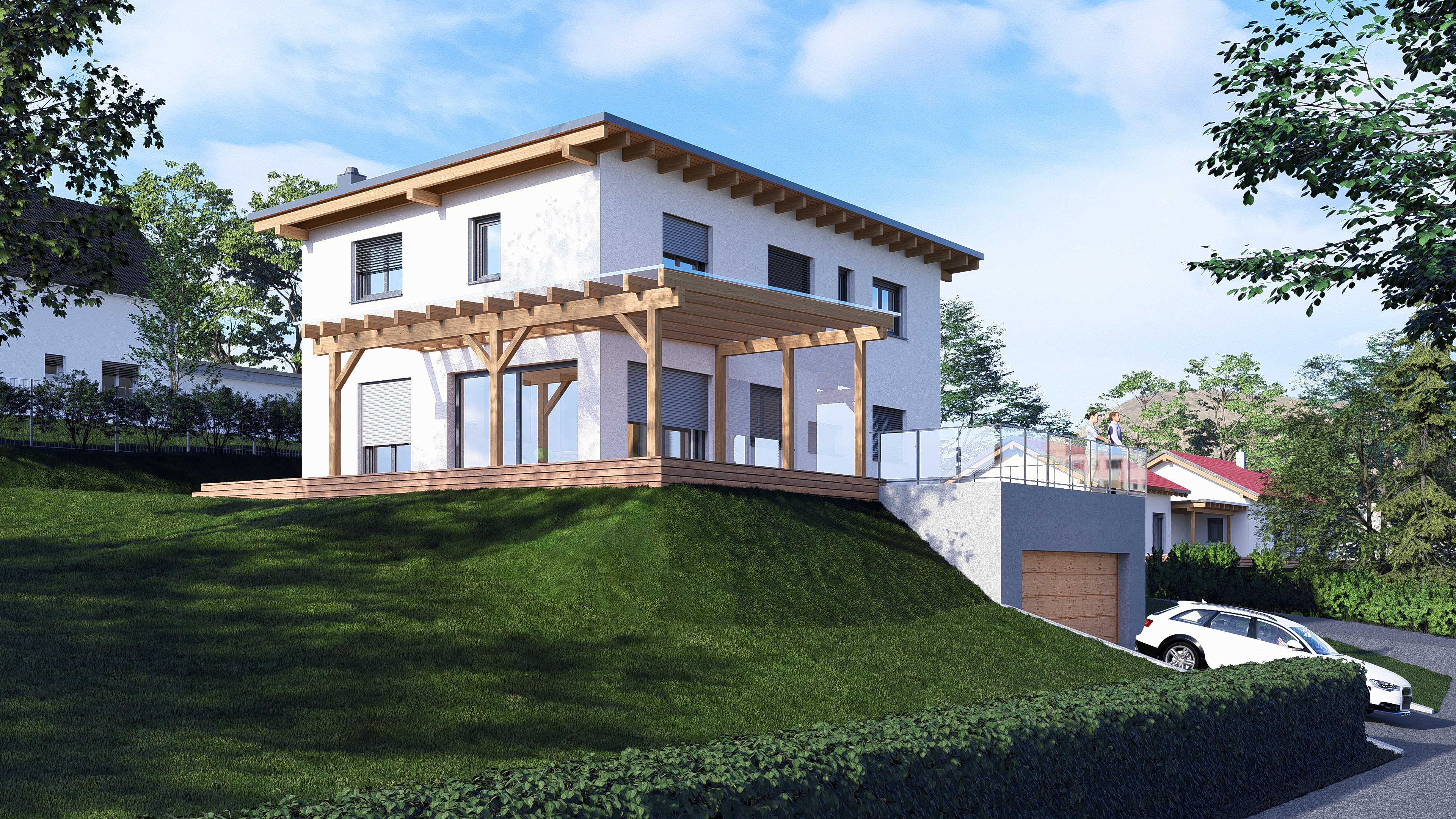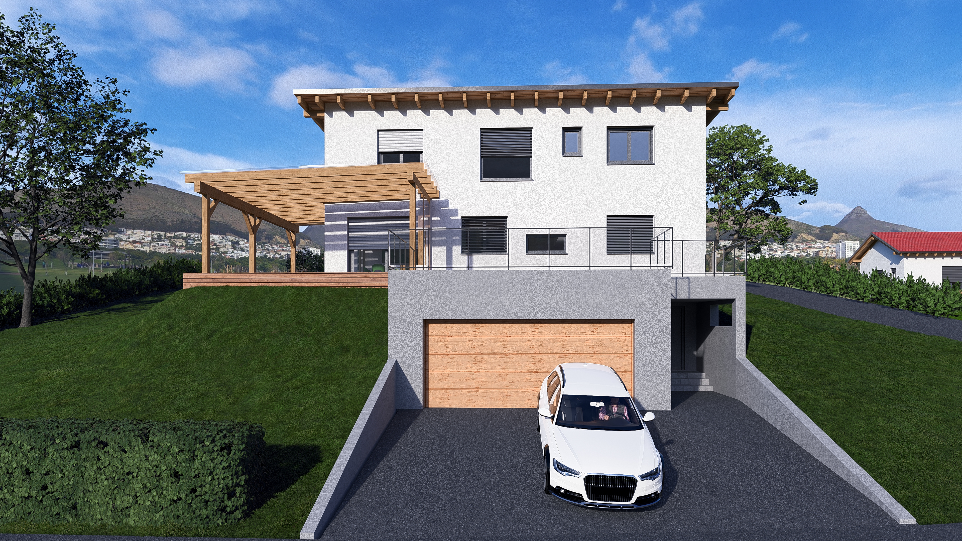 Das vorgestellte Einfamilienwohnhaus in Stattegg ist ein zweigeschoßiges Gebäude in Holzrahmenbauweise, ausgestattet mit einem innovativen Pultdach mit einer Neigung von 2°. Der Keller und die dazugehörige Garage wurden mit Stahlbeton geplant, wobei über der Garage ein 46m² großes extensiv begrüntes Flachdach vorgesehen ist. Umweltfreundlichkeit und Nachhaltigkeit stehen bei diesem Projekt im Vordergrund. Neben der Verwendung von Holzfaser- und Zellulosedämmung wurde auch besonderer Wert auf ökologische Materialien wie Funderplan Biofaserplatten und Pullex hightech-lasierende Holzteile gelegt.