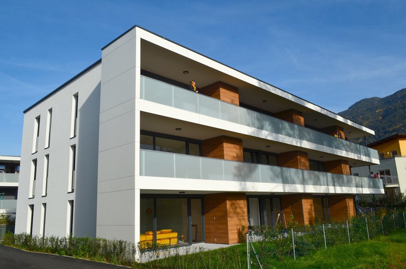 Mehrgeschoßiger Wohnbau in Passivhausbauweise mit 12 Eigentumswohnungen pro Baukörper. Massivbauweise mit VWS.Das gesamte Gebäude ist mit einer Komfortlüftung ausgestattet.