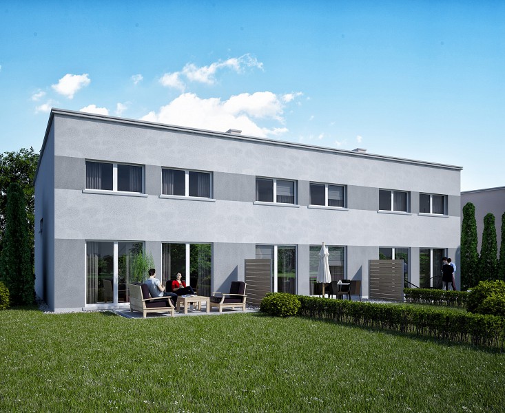 Moderne Wohnhausanlage in sonniger Lage in St. Pölten. TYP118 einer Doppel-, Reihen- und Einzelhausanlage mit 11 Wohneinheiten in Passivhausqualität. Alle Gebäude sind in Passivhausqualität errichtet. Die Anlage besteht aus 2 Doppelhäusern, zwei 3er Reihenhäusern und einem Einfamilienhaus.