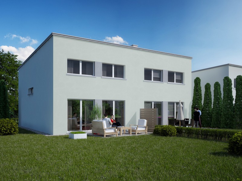 TYP RH118: Moderne Wohnhausanlage in sonniger Lage in Ternitz. Doppel- und Reihenhäuser mit insgesamt 8 Wohneinheiten in Passivhausqualität.