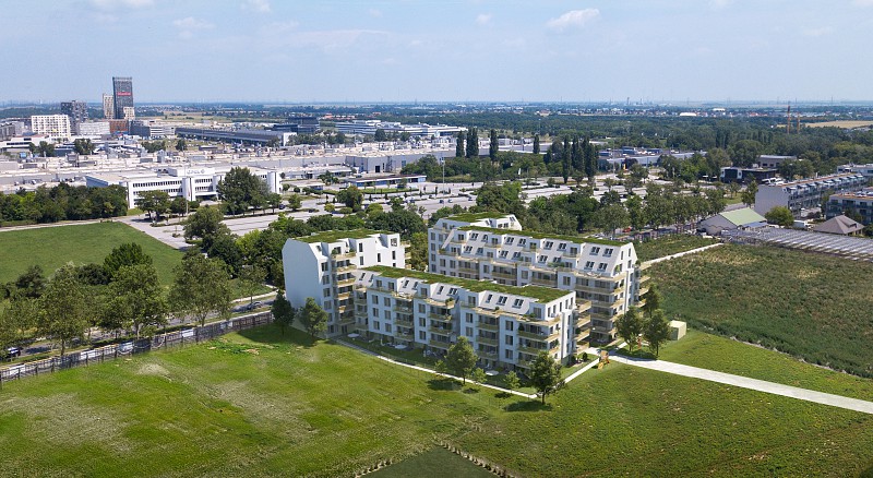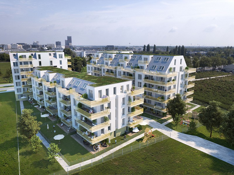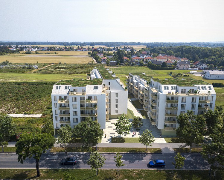 In der Großenzersdorfer Straße werden zwei Bauteile mit in Summe 150 Wohnungen errichtet. Sie liegen sehr gut angebunden an den öffentlichen Verkehr, Geschäfte und viele Freizeitmöglichkeiten sind in direkter Nähe vorhanden. Außerdem wird ein Fahrradstellplatz je Quadratmeter Wohnnutzfläche errichtet. Das Gebäude wird im Niedrigenergiehausstandard errichtet und mit Fernwärme versorgt. Die zwei Wohnblöcke sind von einem gemeinsamen öffentlichen Freiplatz aus erschlossen. Alle Wohnungen besitzen einen eigenen Freiraum, die Dächer werden begrünt.