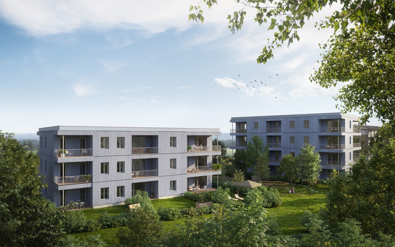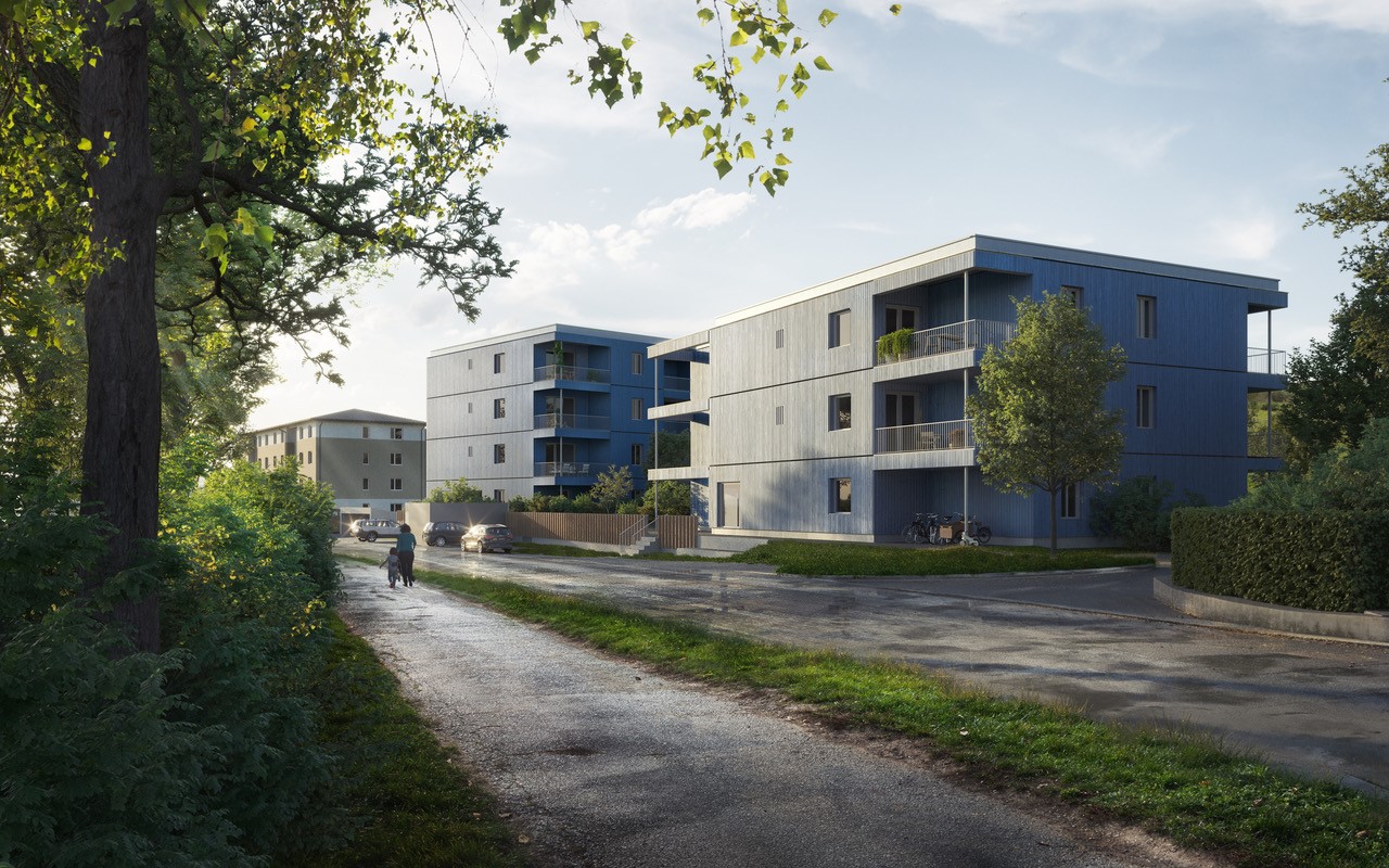An Stelle eines alten Supermarkts wird ein Wohnbau in Holzbauweise errichtet. Um sich in die umgebende Struktur einzupassen verteilen sich die Wohnungen auf zwei Bauteile unterschiedlicher Höhe. Ihre Positionierung auf dem Grundstück garantiert ruhige Wohnungen und sonnige private Freiräume – bei gleichzeitig qualitätsvollen Gemeinschaftsflächen. Grundsätzlich sind die einzelnen Etagen als Regelgeschoße mit Zwei-, Drei- und Vierzimmerwohnungen konzipiert. Die der Bauweise inhärente Flexibilität, gepaart mit einer kompakten Schachtstruktur, lässt eine Um- oder Neuorganisation der Grundrisse zu und ermöglicht die Anpassbarkeit an eine andere Nutzung oder veränderte Wohnumstände. Eine Raumhöhe von drei Metern erhöht die Wohnqualität und gewährleistet alternativ auch eine Anpassung an eine Büronutzung.