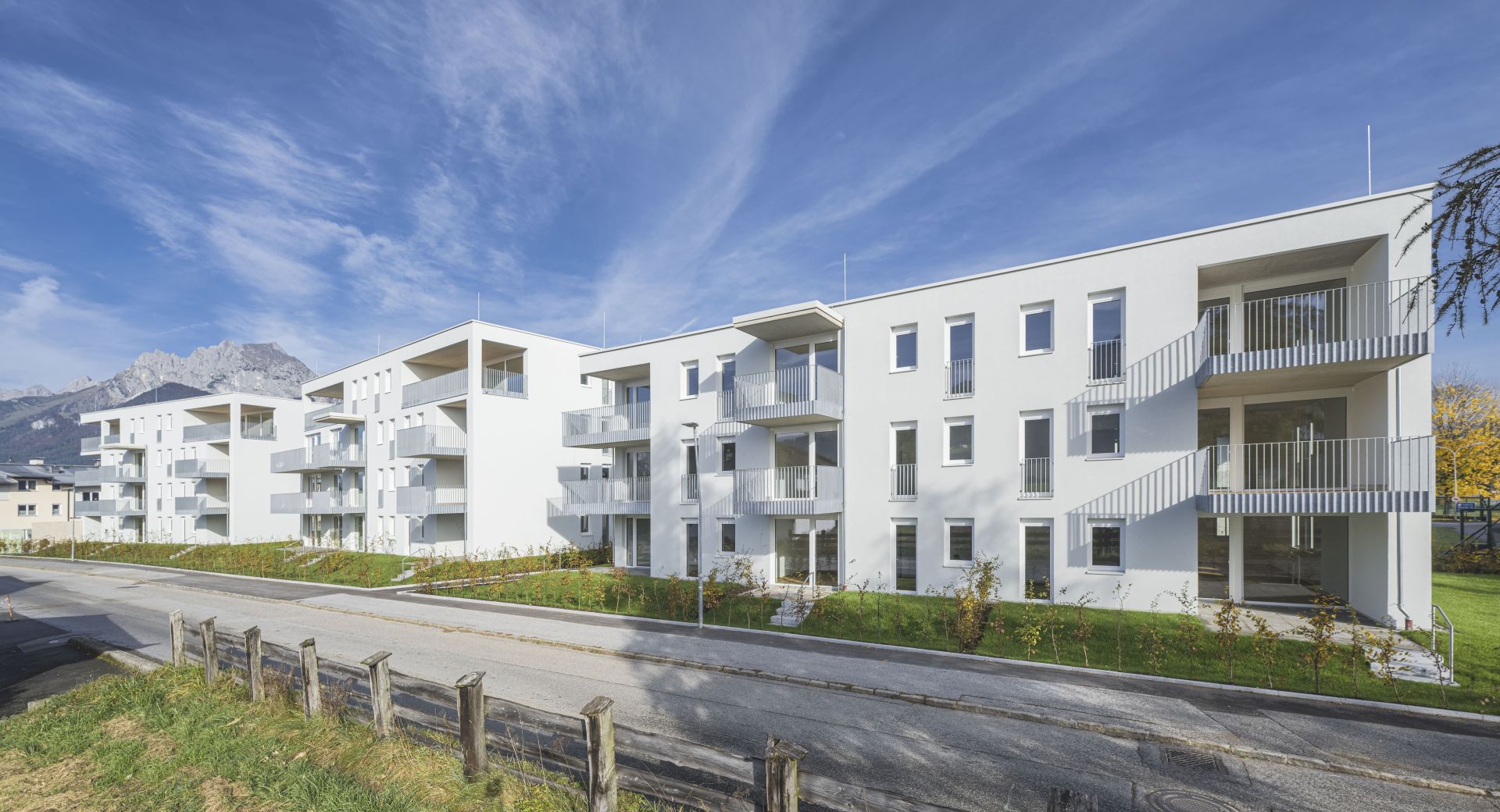 Der Neubau Wohnanlage ST28E am Oberhofenweg in St. Johann in Tirol besteht aus 32 Wohneinheiten, aufgeteilt auf drei Einzelgebäude, Haus A, Haus B und Haus C. Der Altbestand auf dem 2975 m² großen Grundstück wurde abgebrochen. Jedes Haus verfügt über einen zentralen Erschließungskern mit Treppenhaus und Lift, der die Wohnungen über einen Dreispänner erschließt. Im gesamten Gebäudekomplex befinden sich zehn 2-Zimmerwohnungen, der größte Anteil mit siebzehn 3-Zimmerwohnungen und fünf 4-Zimmerwohnungen mit Größen von 54 m² bis 95 m².