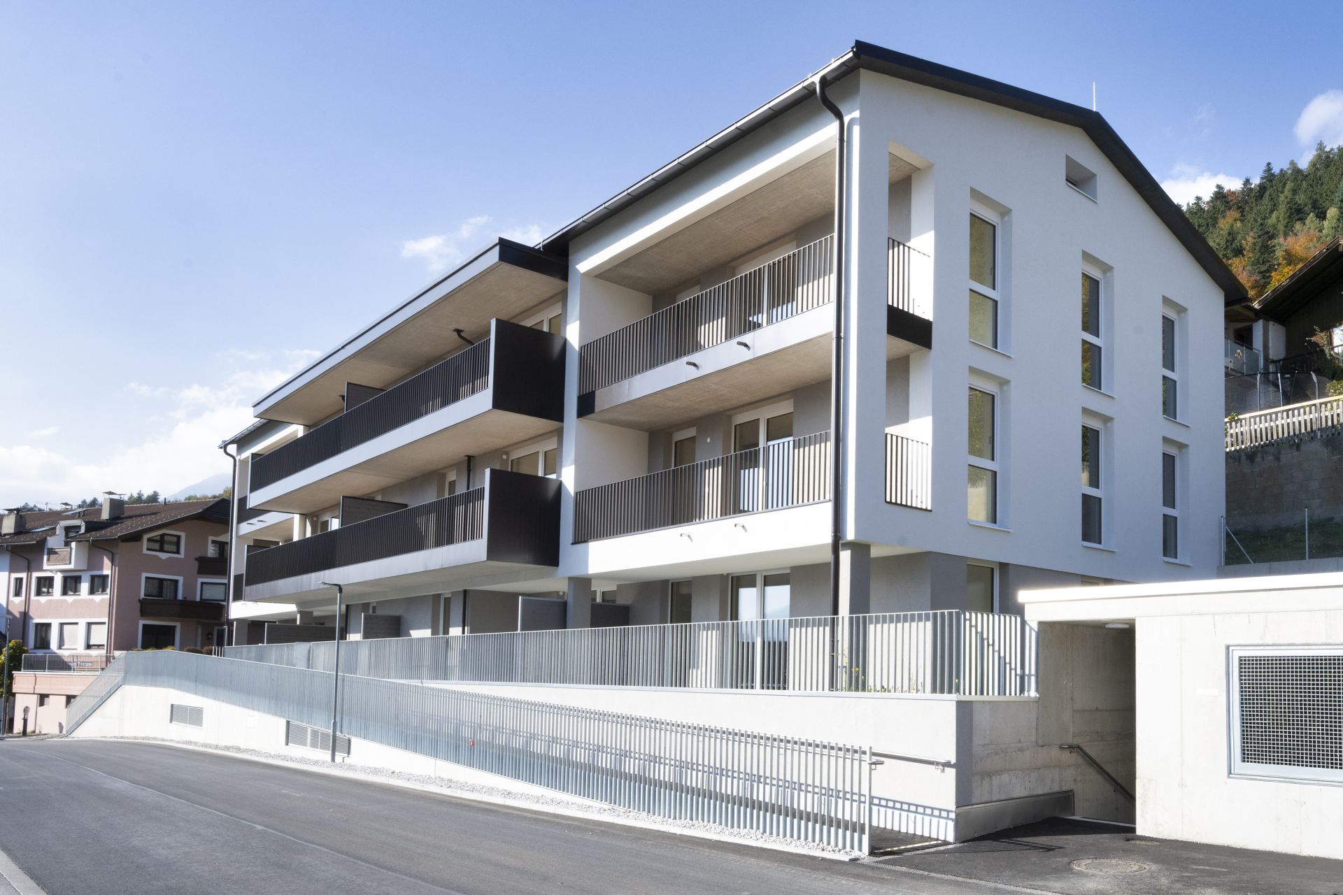 Die Neue Heimat Tirol hat in Fritzens einen dreigeschossigen Baukörper (Erdgeschoss und 2 Obergeschosse) mit 11 Wohnungen und zugehöriger Tiefgarage errichtet. Das Tiefgaragengeschoss erscheint aufgrund der topographischen Gegebenheit an der Südseite als oberirdisches Geschoss. Der Wohnbau wurde als Vierspänner ausgeführt und ist über ein zentral angeordnetes Stiegenhaus mit Aufzugsanlage erschlossen.