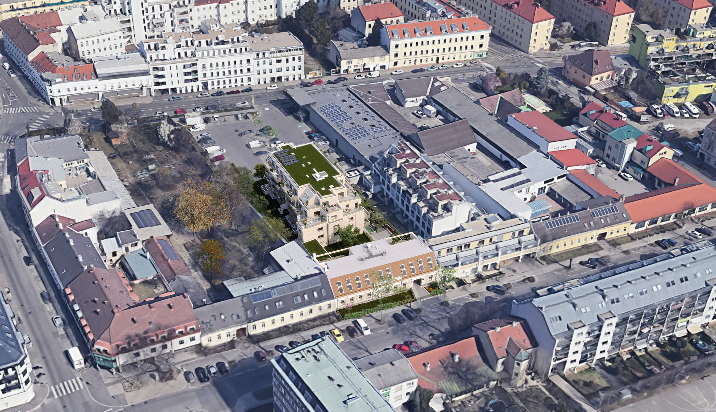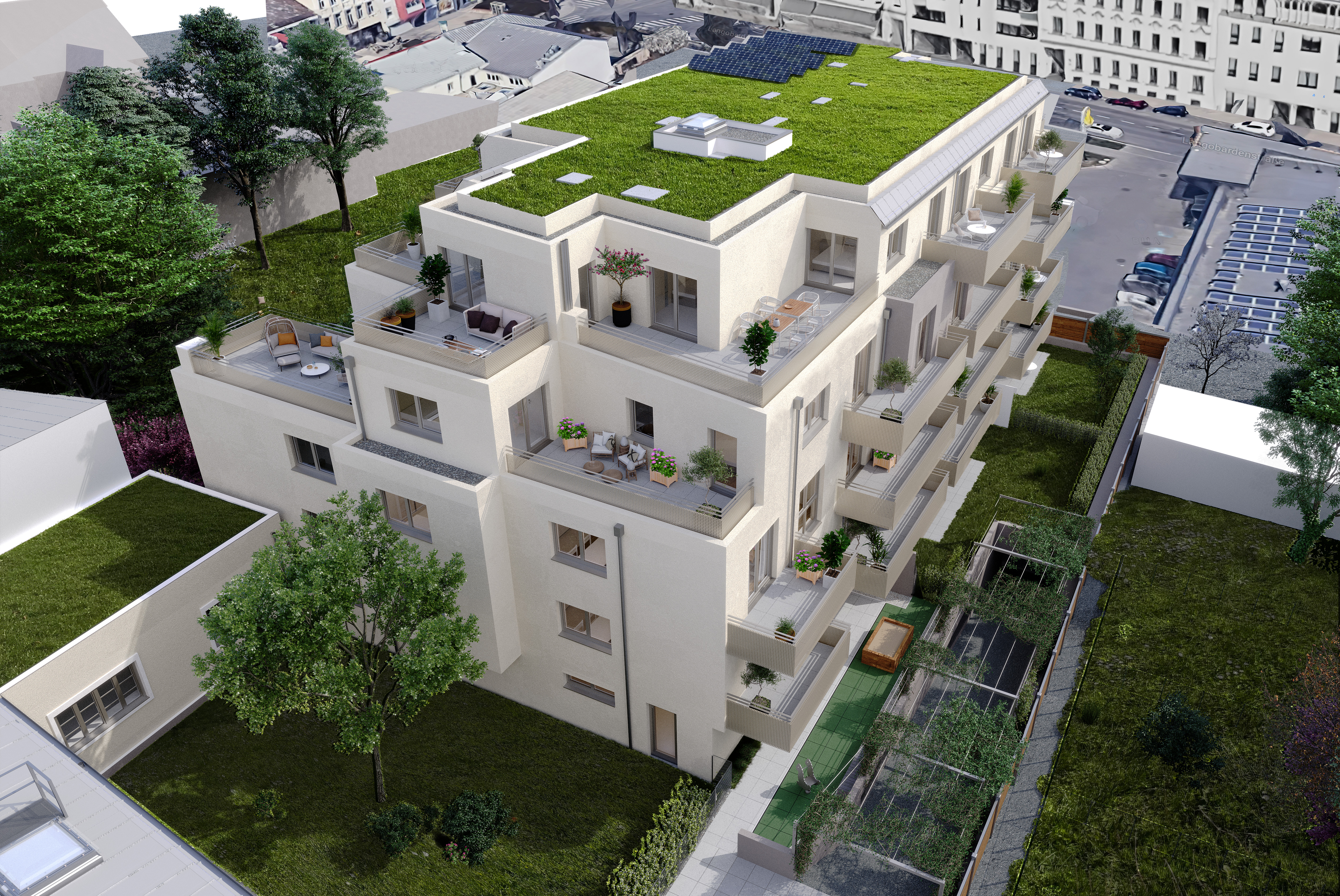 Die Wohnhausanlage in der Schickgasse 3 besteht aus einem Straßengebäude (Bestand) mit vier Wohneinheiten (nicht Bestandteil der klimaaktiv Zertifizierung) und einem Hofgebäude, das mit 34 Wohneinheiten errichtet werden soll. Im Untergeschoß sollen Parkplätze, Einlagerungsräume, Fahrradabstellplätze sowie Haustechnikräume untergebracht werden. Im Straßentrakt soll sich der Müllraum für beide Gebäude befinden. Für die Wohnungen im Erdgeschoß ist eine Gartenfläche vorgesehen, für jene in den Obergeschoßen jeweils ein Balkon oder eine Terrasse. Es soll Wohnungen mit zwei, drei oder vier Zimmer geben.