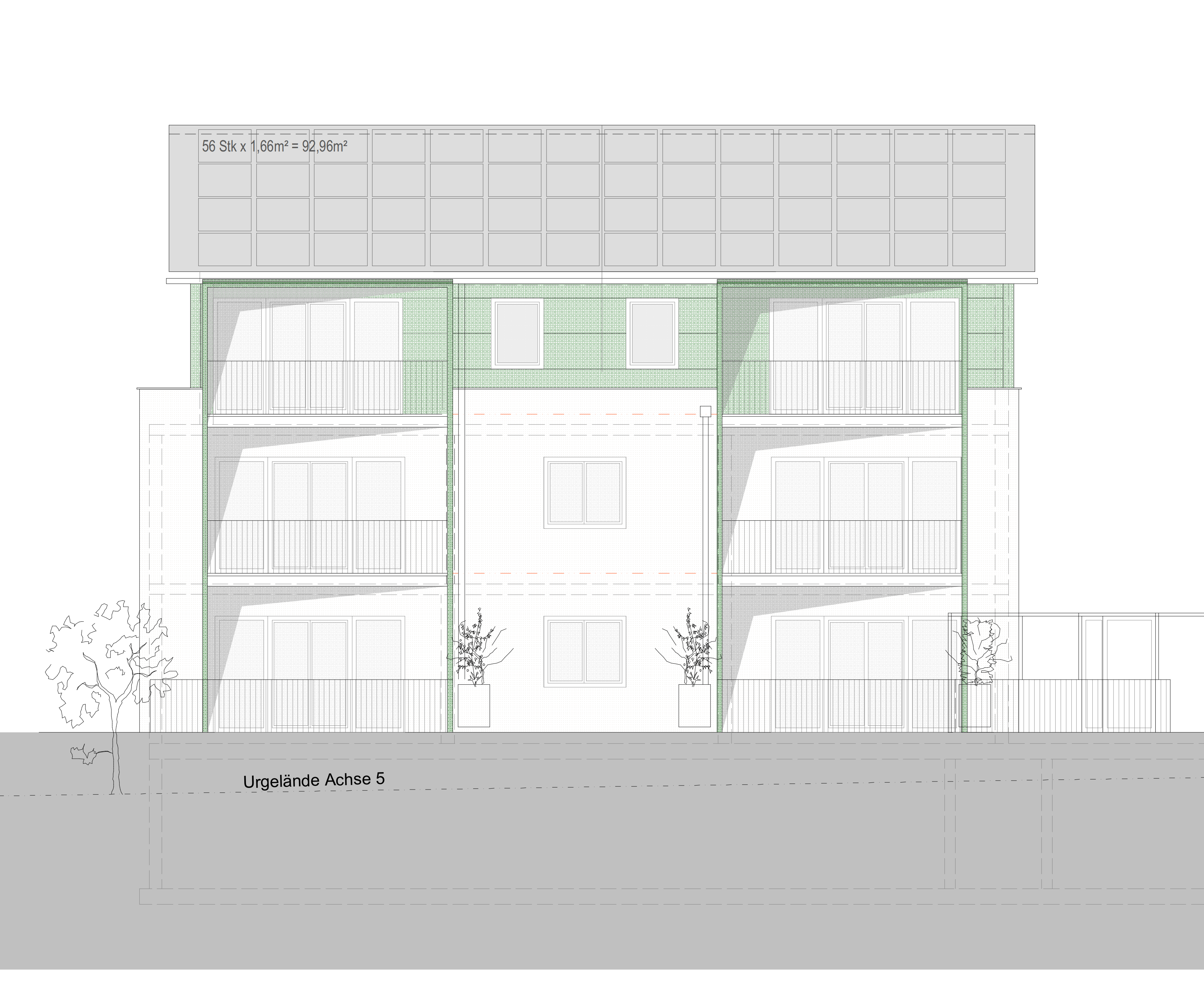 Auf dem Grundstück 263/2 ist eine 3-geschoßige Bebauung mit Satteldach vorgesehen und ein bestehendes Einfamilienhaus wird abgebrochen.