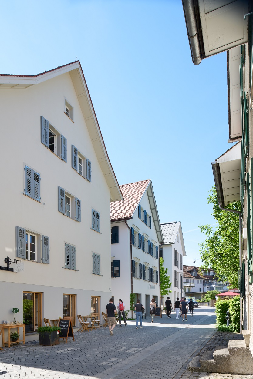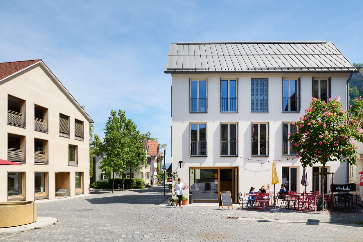 Bis vor Kurzem hatte Hohenems eine strukturschwache, fast ausgestorbene Altstadt. Das hat sich geändert. 2018 hat der Vorarlberger Projektentwickler Markus Schadenbauer mit Unterstützung von Gemeinde und Denkmalbehörde begonnen, alte, desolate, leerstehende Häuser in der Ortsmitte zu kaufen, zu sanieren und mit neuem Leben zu befüllen – mit Wohnen, Arbeiten und Handelsgewerbe. Die Verwertung der Geschäftslokale wird sorgfältig kuratiert, bevorzugt werden Einzelunternehmen und Familienbetriebe. In den letzten Jahren haben sich 50 neue Gewerbe angesiedelt, 165 Arbeitsplätze wurden geschaffen. Ergänzt wird die sukzessive Revitalisierung von einer Begegnungszone mit Brunnen, Gastgärten und neuem Bebauungsplan.