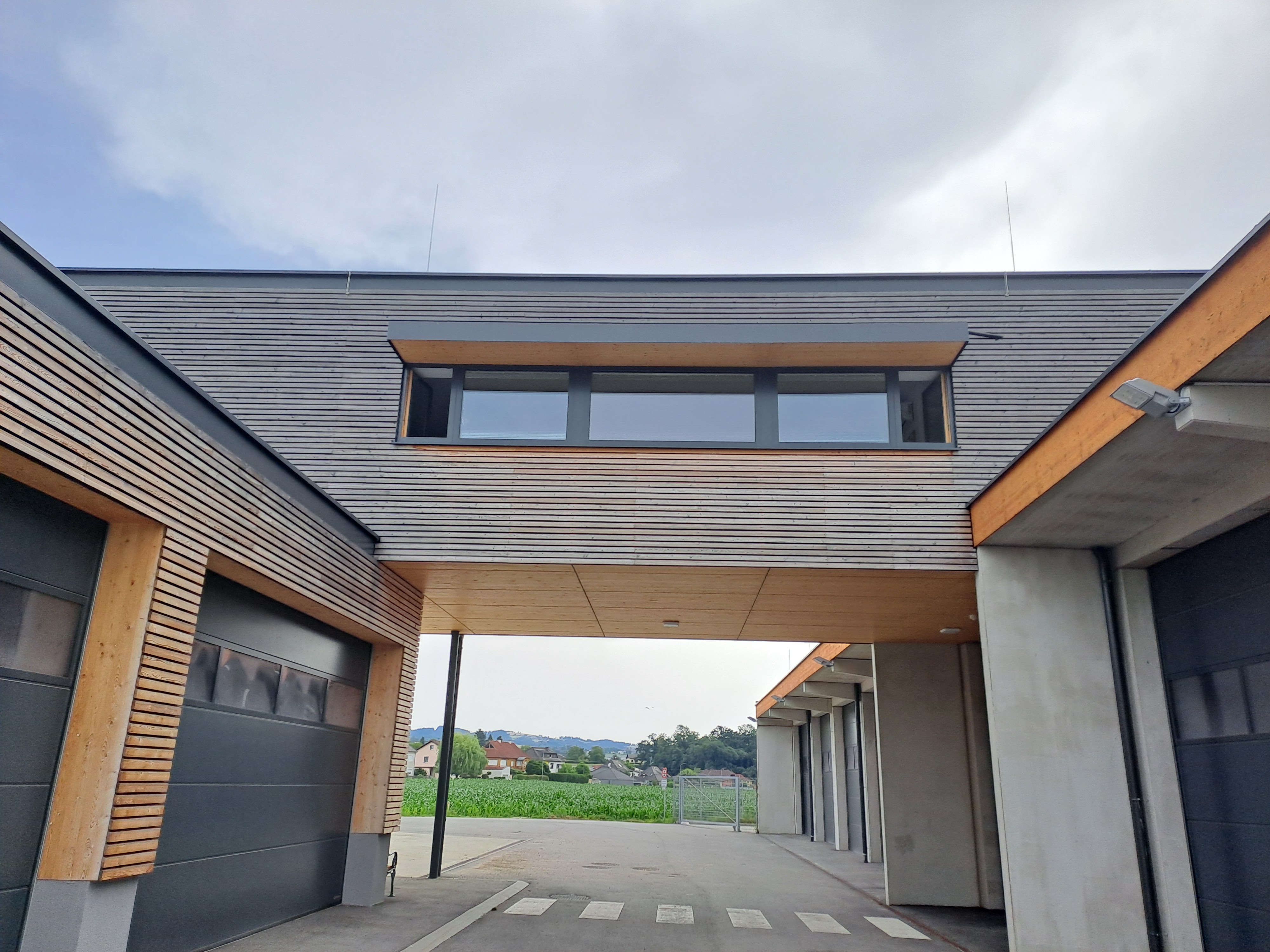 Es wurde ein Bauhof mit Fahrzeughalle und Werkstätten, sowie einem Bürotrakt und Aufenthaltsmöglichkeiten für Mitarbeiter:innen errichtet.