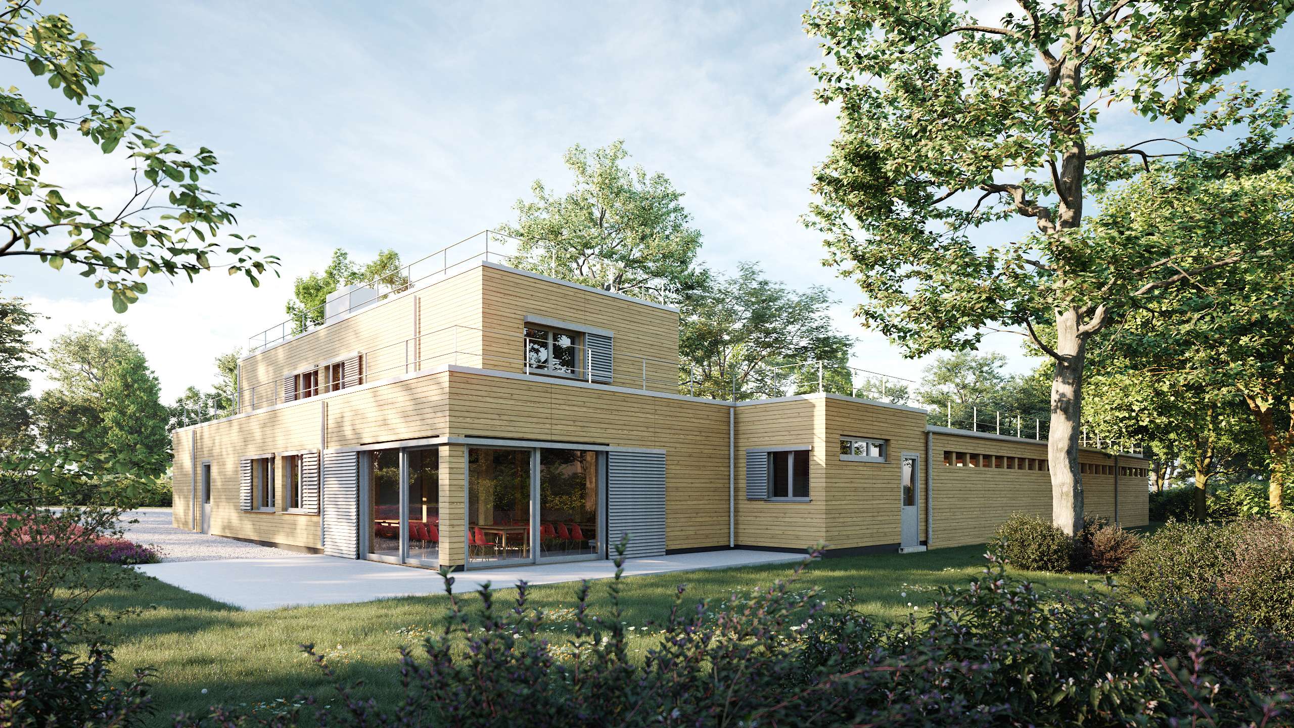 Das Grundstück befindet sich im Schweizergarten im dritten Wiener Gemeindebezirk. Gegenüber dem Baufeld ist das derzeitige Verwaltungsgebäude des Stadtgartenamtes (MA42) situiert. Die Konzeption des Neubaus der Gärtner*innenunterkunft besteht aus drei funktional unterteilten Bereichen, welche am Rande des Bauplatzes angeordnet sind. Dieser Ansatz beruht auf dem historischen Hintergrund eines Dreikanthofes. Auf dieses Projekt abgestimmt, gliedern sich die drei Bereiche in den konditionierten Bereich des Büro- und Personalgebäudes mit angrenzender Werkstatt, dem konditionierten Maschinenunterstand und dem unkonditionierten betriebstechnischen Bereich unterhalb des Flugdachs.