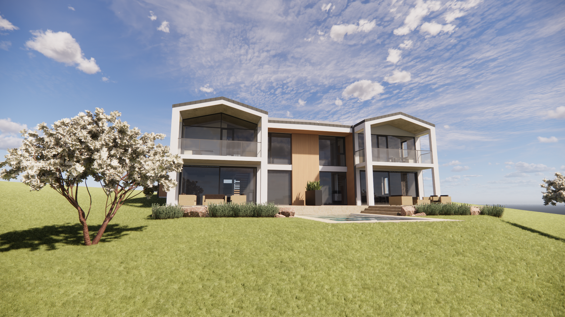 Entwurfsgedanke war es, die unverbaubare Aussicht Richtung Süden auszunutzen. Dies wurde durch eine terrassenartige Abstufung des Baukörpers sowie großflächige, nach Süden ausgerichtete Fensterflächen erreicht. Eine Besonderheit stellt die gemeinsame Nutzung des Nebengebäudes dar, wo Lagerflächen sowie die haustechnischen Anlagen untergebracht sind. Auch der auf den Dachflächen erzeugte Strom über eine PV-Anlage wird gemeinsam genutzt. Die Regenwässer werden über ein Retentionsbecken gedrosselt abgeleitet. Zusätzlich sind sämtliche Flachdächer extensiv begrünt.