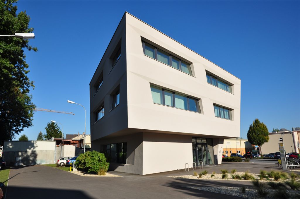 Zentrales Element ist das innenliegende Atrium, über das die Erschliessung des Gebäudes erfolgt. Durch Material- und Farbwahl der Fassade und der Dachdeckung wird das Gebäude zum monolithischen Baukörper. Facettierungen der Wärmedämmung um die Fensteröffnungen verhindern das Entstehen einer starren Lochfassade.