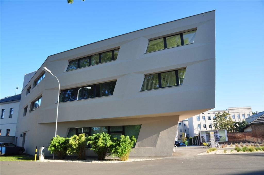 Das Bürohaus umfasst das Erdgeschoss und zwei Obergeschosse (mit eingehängtem Technikgeschoss). Da das Gebäude nicht unterkellert ist, befinden sich Funktions - und Technikflächen vornehmlich im Erdgeschoss. Die Arbeitsplätze sind in Obergeschoss 01 und Obergeschoss 02 angeordnet: OG01 verfügt über Zellenbüros.
