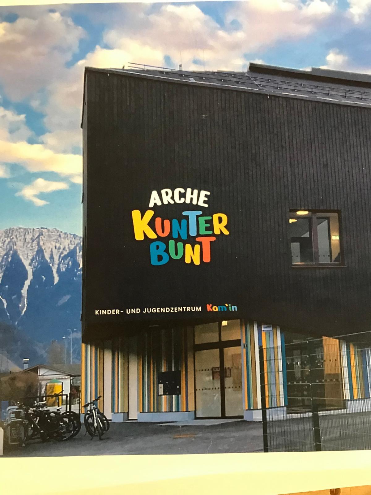 Das Gebäude wird als kompakter, hochgedämmter Massivbau errichtet, um den geforderten hohen Standards des Schall- und Wärmeschutzes gerecht zu werden. Im lichtdurchfluteten Innenraum unterstreichen helle Naturmaterialien die kinderfreundliche, warme Atmosphäre. Die schützende, dunkle Hülle des Baukörpers wird in der Erdgeschoßzone wo nötig und sinnvoll aufgeschnitten. Die dahinterliegende Schicht ist kindlich, verspielt und bunt. Im Inneren präsentiert sich ein offener Raumfluss, der durch die geschlossene Außenhaut nicht