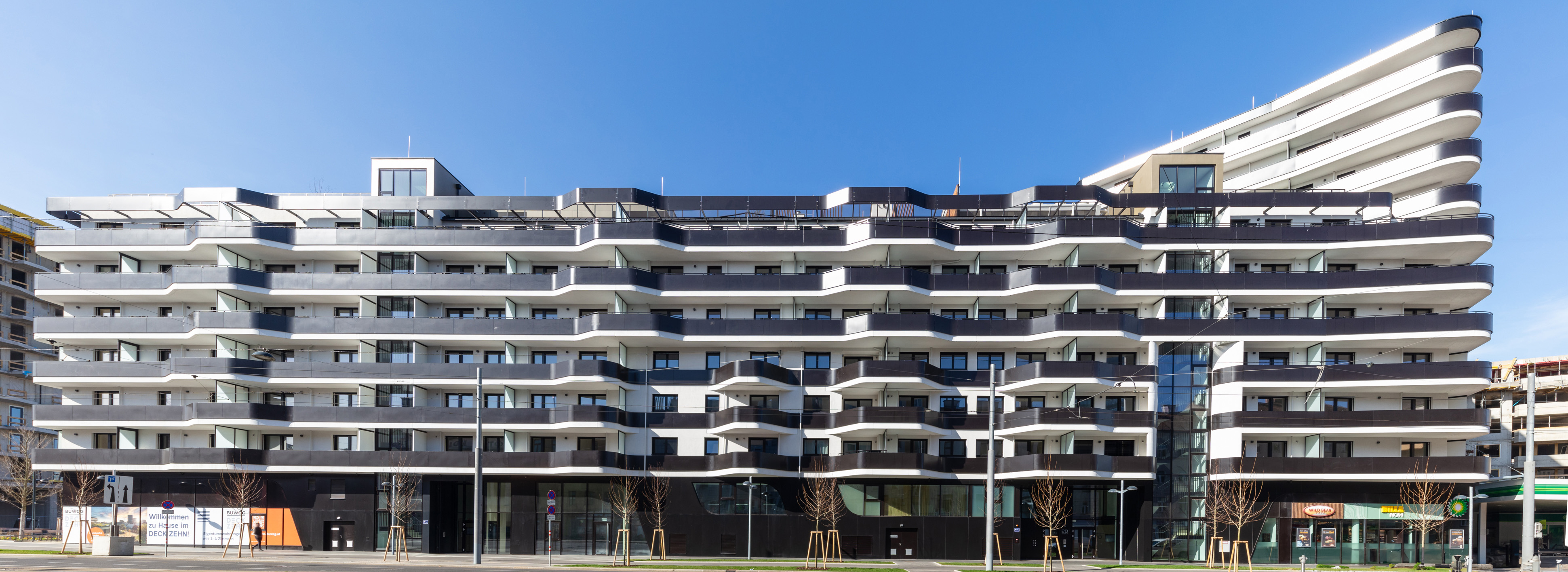 In dem 10. Wiener Bezirk befindet sich die aus einem verbundenen Baukörper bestehende neue Wohnhausanlage, LAX 2D bzw. DECK ZEHN. Das Gebäude besteht aus 229 Eigentumswohnungen mit Freibereichen, hauseigener Photovoltaikanlage, modernen Gemeinschaftsräumen, abwechslungsreich nutzbaren begrünten Dachflächen, Co-Working Bereich, einem Wellness- und Saunabereich sowie aus drei Gewerbeeinheiten. Von der kleinen 1-Zimmer-Wohnung bis zur großen Maisonette-Wohnung gibt es vielfältige Wohnungstypen für vielfältige Bedürfnisse. Charakteristisch für das Projekt sind die großzügigen geschwungenen, umlaufend auskragenden Balkone, die für die Bewohner ausreichend Freiraum ermöglichen. In der Tiefgarage wurden Fahrradräume sowie die Vorbereitungen für E-Tankstellen ausgeführt.