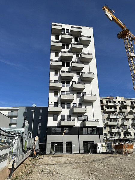 Im 10. Wiener Gemeindebezirk wurde ein qualitativ hochwertiger Neubau errichtet. Die 60 Wohnungen sind über 11 Stockwerke verteilt, zwischen 30m² und 38m² groß und verfügen alle über einen privaten Balkon. Besonderes Augenmerk liegt auf dem Wohlfühlcharakter der gesamten Liegenschaft. Errichtet wurde das Gebäude in Stahlbetonbauweise. Die Fassade der Büroflächen mit Coworking-Spaces im Erdgeschoß und ersten Stock hebt sich optisch vom Rest der Fassade ab. Die versetzte Anordnung der Balkone verleiht dem Gebäude einen besonderen Look. Beheizt wird es mittels Fernwärme der Stadt Wien. Die Sommer-Temperierung wird über einen zentralen Rückkühler am Dach bewerkstelligt. In allen konditionierten Räumen erfolgt die Temperaturregelung mittels Betonkernaktivierung.