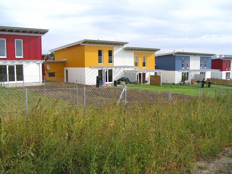 Doppelhausanlage in Holzriegelbauweise mit Unterkellerung.