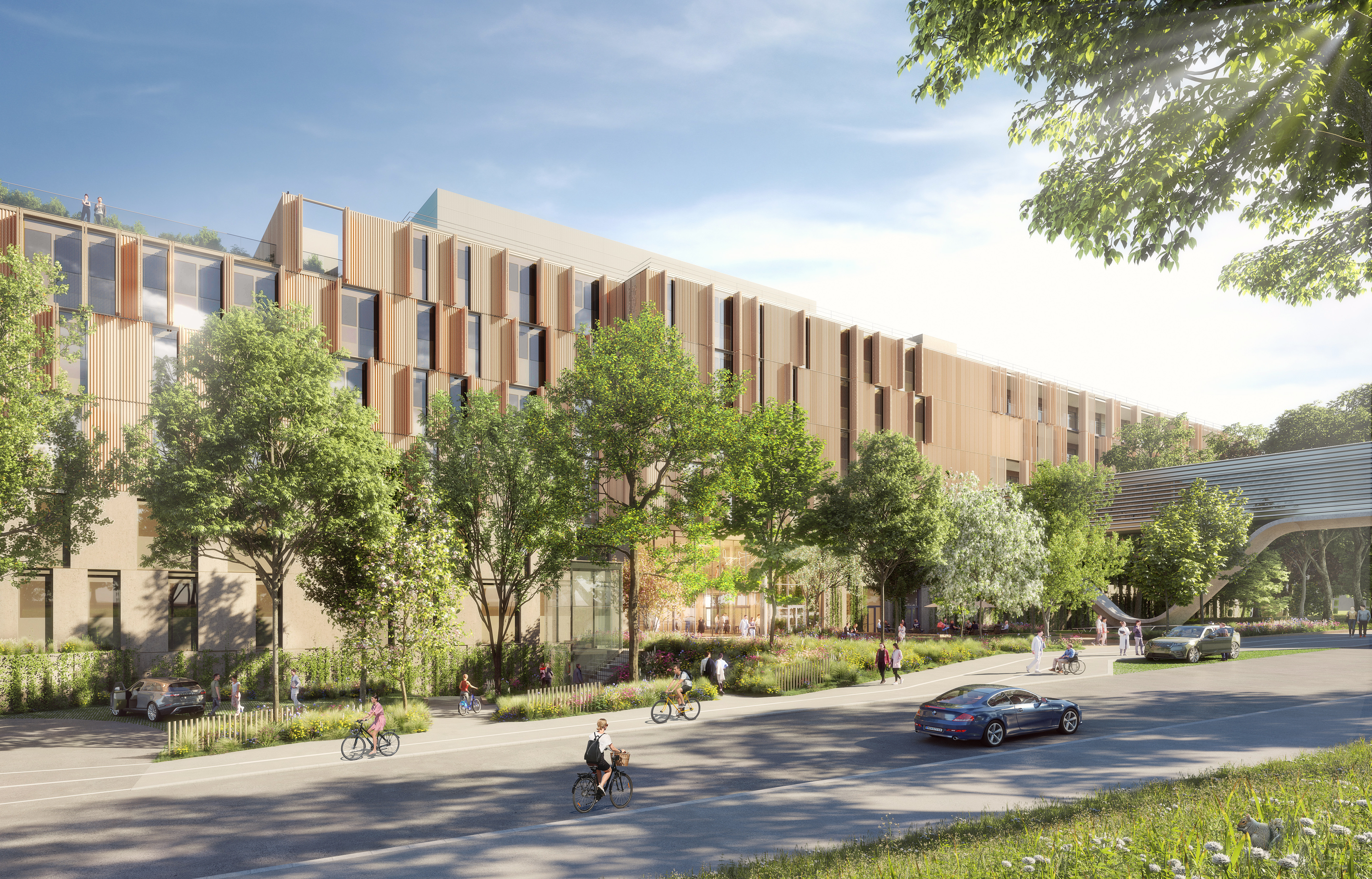 In Wien Meidling entsteht ein hochmodernes Rehabilitationszentrum, das gemeinsam mit dem Traumazentrum Wien (ehem. UKH Meidling) Teil des neuen Traumacampus Wien werden soll – daher werden alle Gebäudeteile mittels Brücken verbunden. Durch ein durchdachtes Farb- und Materialkonzept, das durch den gezielten Einsatz von Farben und Materialien die Genesung fördert, sowie ein Produkt- und Chemikalienmanagement, das gesundheitlich unbedenkliche und umweltfreundliche Bauprodukte sicherstellt, wird ein ganzheitliches Wohlfühlumfeld für Patient:innen geschaffen. Energieeffiziente Haustechnik prägt das Konzept: Sole-Wasser-Wärmepumpen übernehmen Heizung und Kühlung, Fernwärme deckt die Spitzenlasten ab, und ein Lüftungssystem mit Wärmerückgewinnung sorgt für optimale Innenraumluft. Begrünte Außenflächen und Fassaden runden das Projekt ab.