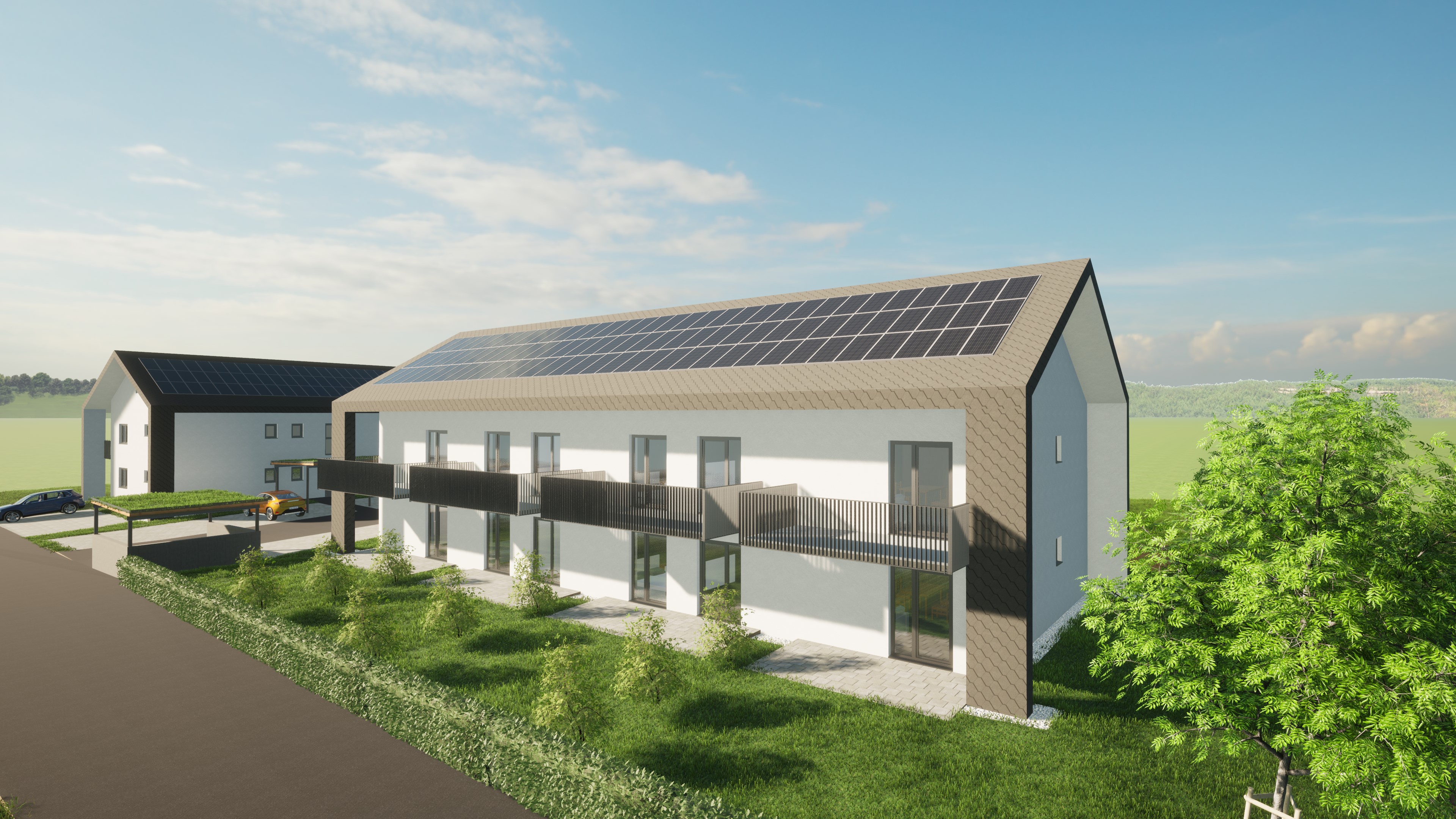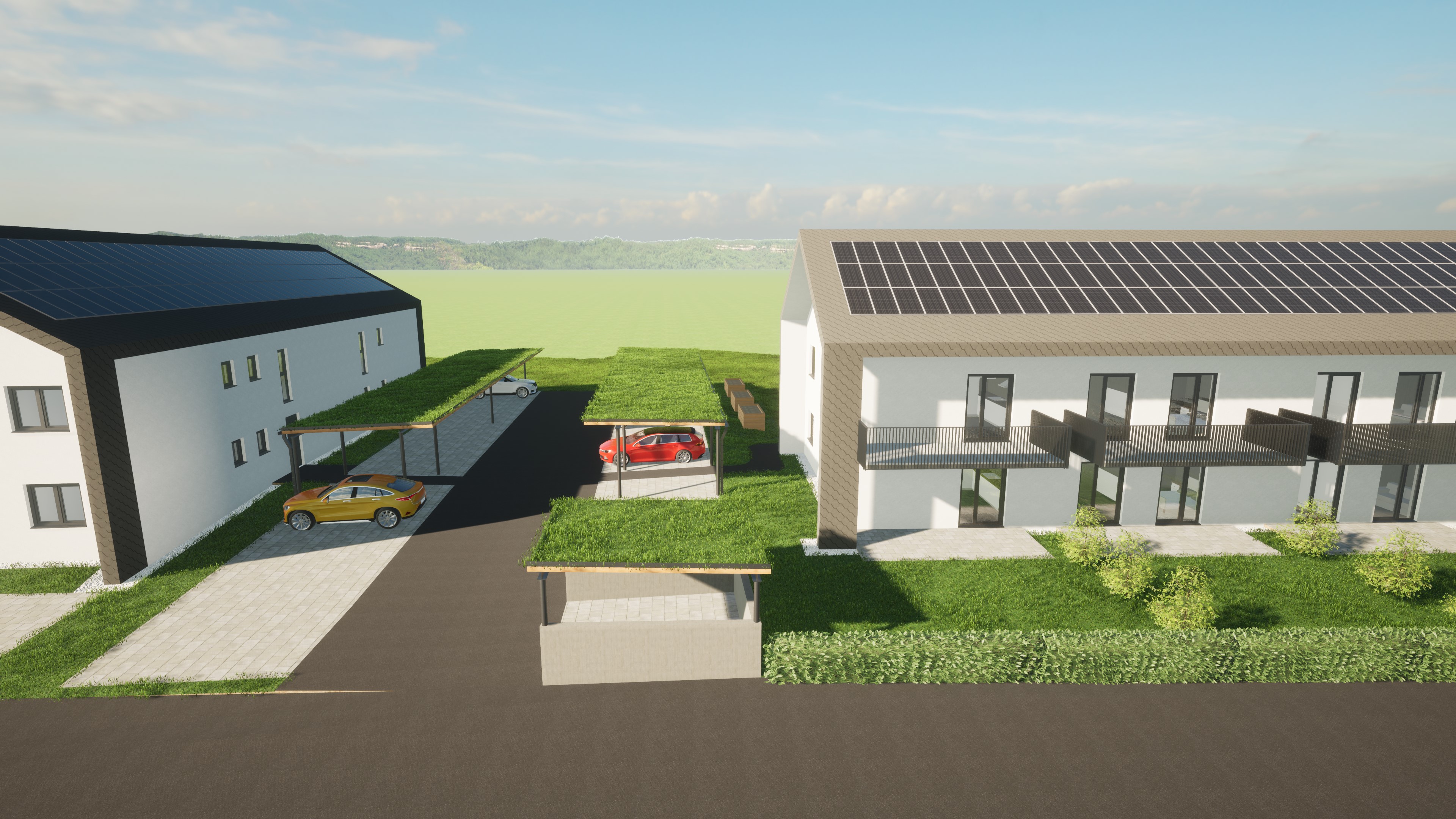 Neuerrichtung von 2 Wohngebäuden mit jeweils 8 Wohnungen, 2 PV Anlagen mit je 48 kWp, 16 überdachte KFZ Abstellplätze und 11 KFZ Abstellplätze im Freien sowie Geländeveränderungen