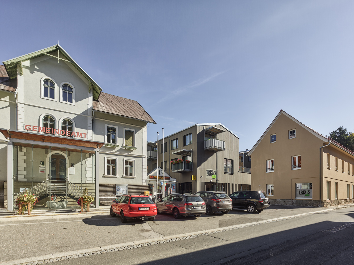 Die Stanz ist eine der wenigen Gemeinden im Mur-Mürz-Tal, die in den letzten Jahren Zuzug verzeichnen konnten. Zu verdanken ist dies einer innovativen Gemeinde- und Baukulturpolitik, die vor allem in Mobilität, Nahversorgung und nachhaltige Energiekonzepte investiert. Eine der gesetzten Initiativen betrifft das neue Ortszentrum. Das Rathaus wurde um einen multifunktionalen Veranstaltungs- und Gemeinderatssaal erweitert, daneben entstand ein mischgenutzter Holzneubau mit Wohnungen und einem neuen, lokal betriebenen Bio-Supermarkt. Damit übernimmt das Gebäude dank Wohnen, Infrastruktur und Nachverdichtungsimpuls eine wichtige Rolle im Dorfleben. Die Stanz ist ein schönes Beispiel für gelebte, nachhaltige Baukultur im ländlichen Raum.