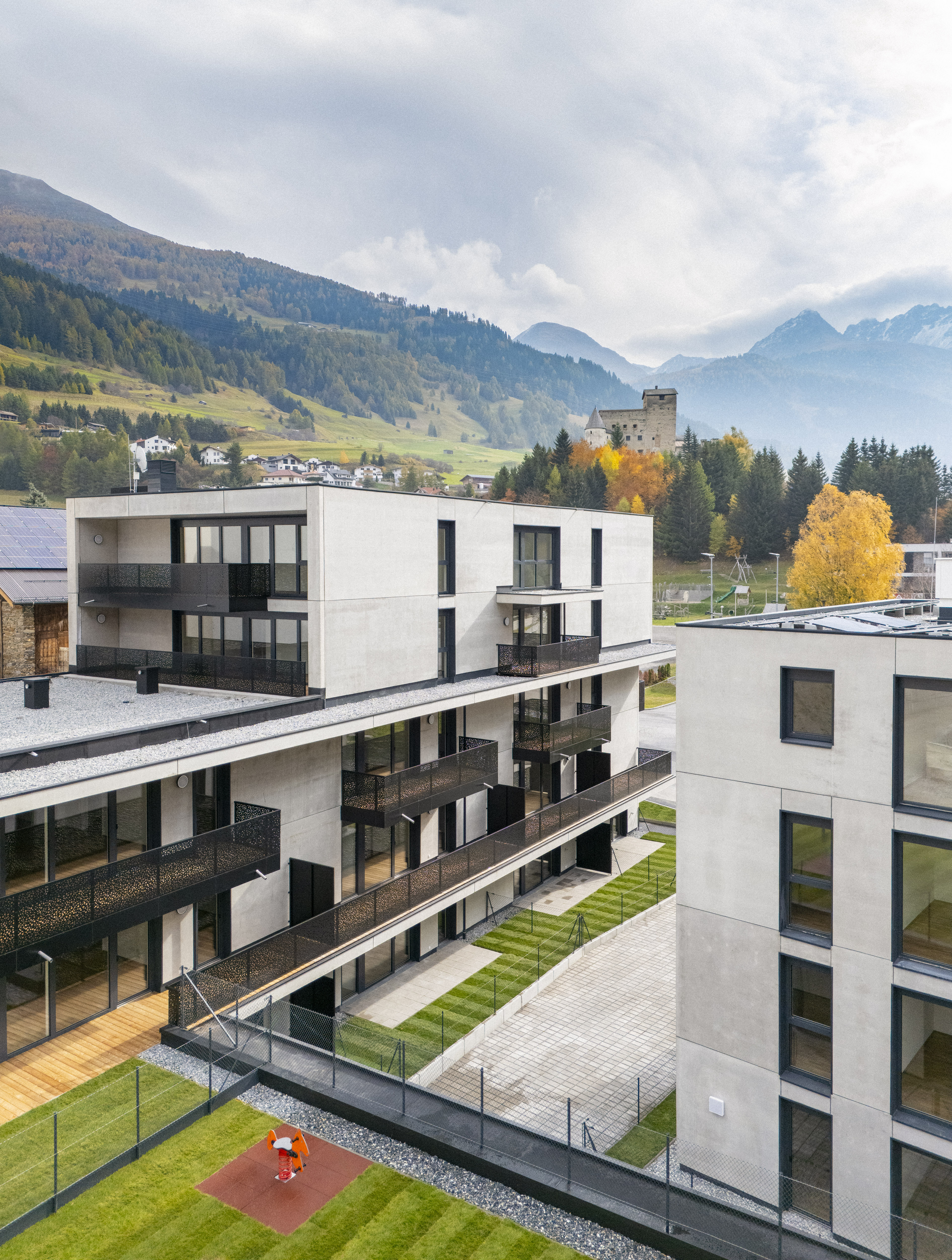 In der Gemeinde Nauders errichtet die Alpenländische Gemeinnützige Wohnbau GmbH eine Wohnanlage mit 26 Mietwohnungen mit Kaufoption n. TWFG 1991 und 31 Tiefgaragenabstellplätzen. Die Wohnanlage besteht aus zwei Baukörpern (aus A und B), welche jeweils durch ein Stiegenhaus und mittels Personenaufzug erschlossen werden. Die Zufahrt zur Wohnanlage und zur Tiefgarage erfolgt über den im Süden gelegenen Mühlenweg. Jede Wohnung verfügt über eine Terrasse oder einen Balkon. Außerdem ist jeder Wohnungseinheit ein Tiefgaragenabstellplatz sowie ein Kellerabteil zugeordnet. Nur die Wohnungen Top 1 und Top 28 haben kein Kellerabteil, da in der Wohnung ein großzügiger Abstellraum vorhanden ist. Im Freien befinden sich 2 Besucherparkplätze, ein Müllraum sowie im 1. OG ein Kinderspielplatz.