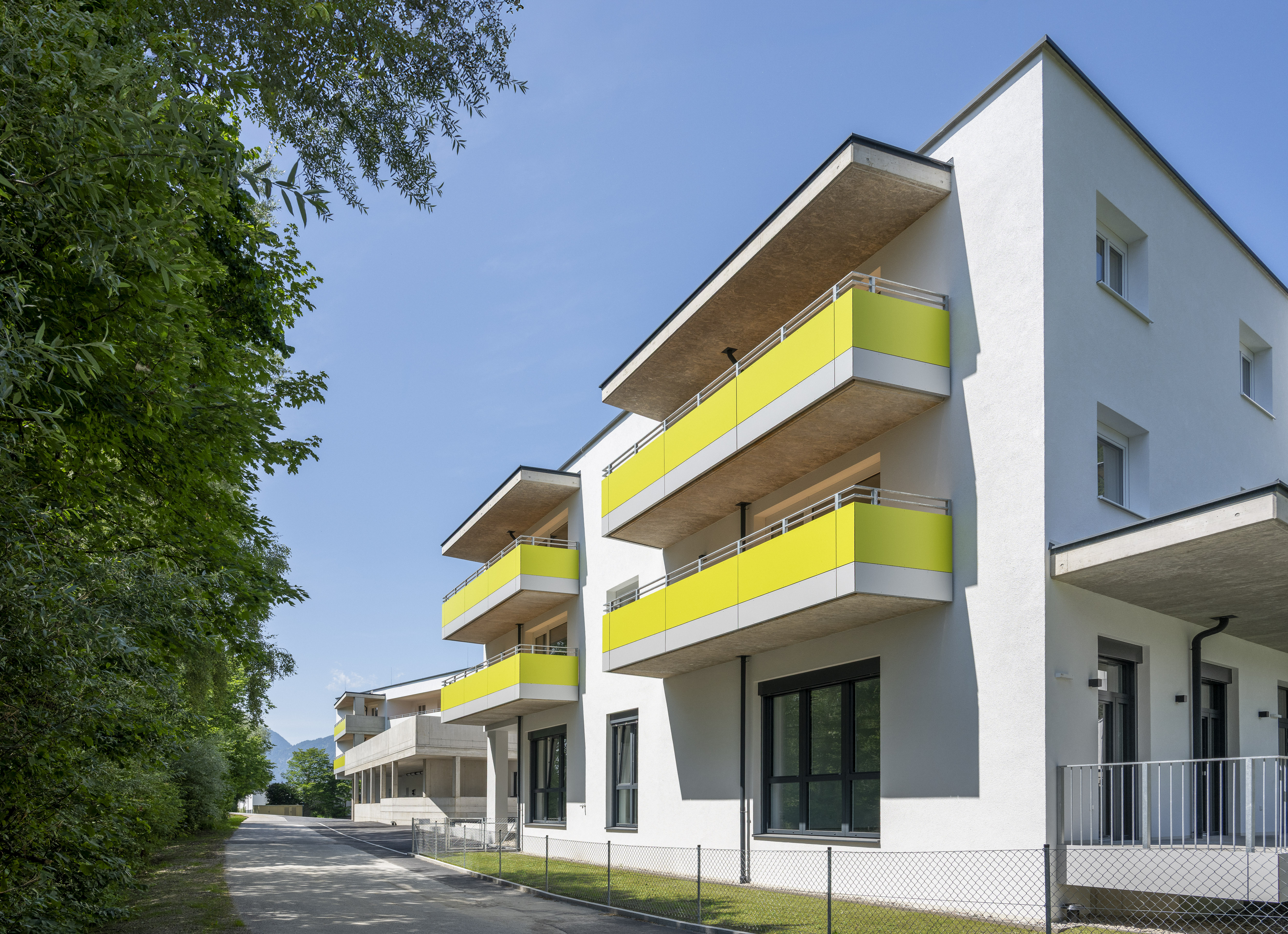 Die Wohnanlage besteht aus einem Baukörper, welcher durch ein Stiegenhaus und mittels Personenaufzug erschlossen wird.