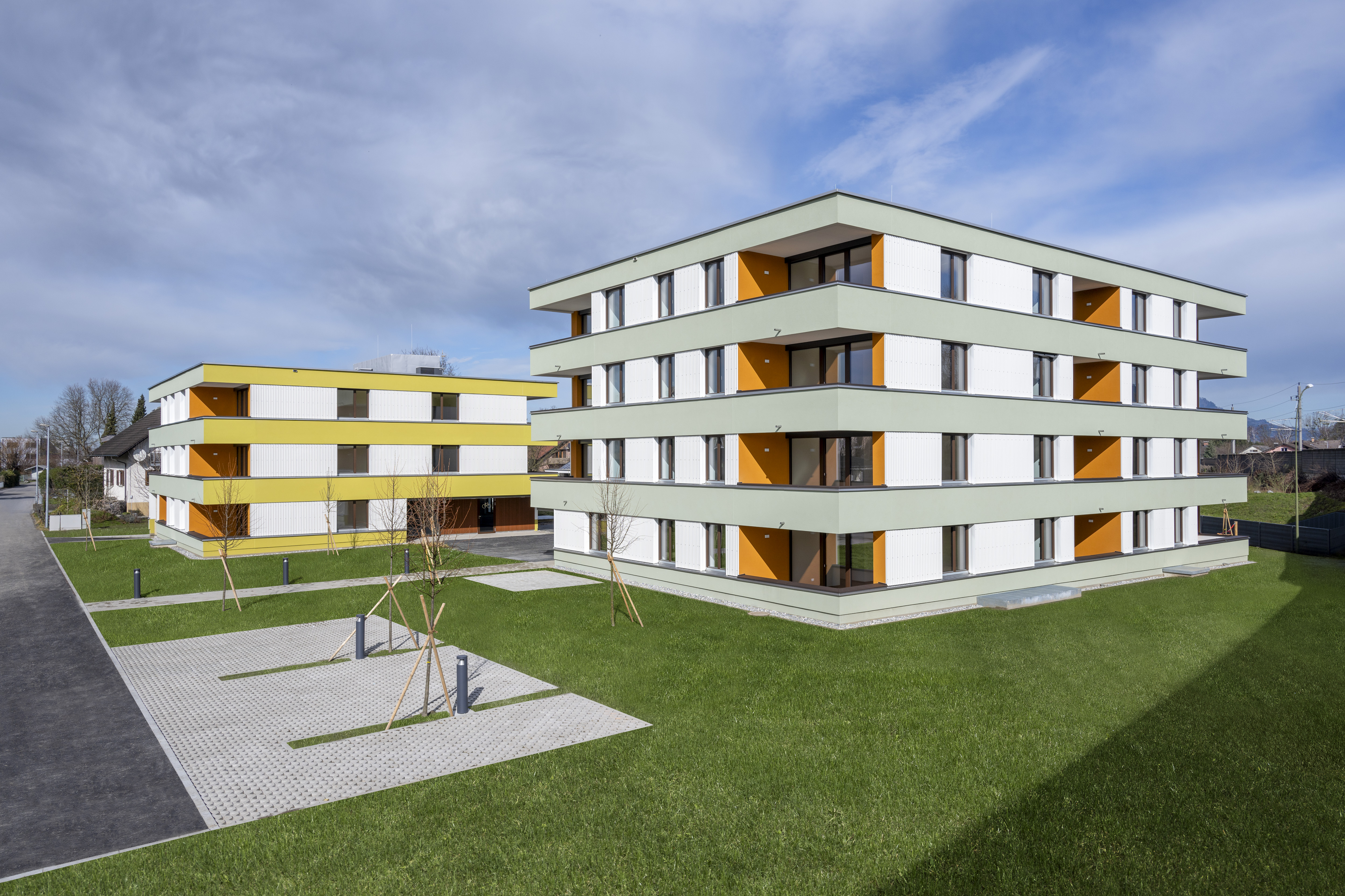 Die Planung des Projektes erfolgte durch das Architekturbüro gruber locher architekten zt gmbh, welches im Rahmen eines Architektur-Wettbewerbs als Sieger hervorgegangen ist. Die Wohnanlage besteht aus 3 Gebäude mit 48 Wohneinheiten + 1 Gemeinschaftsraum. Die Wohnanlage ist unterkellert und verfügt im Haus A über ein Erdgeschoss und zwei Obergeschosse, Haus B und Haus C jeweils über ein Erdgeschoss und drei Obergeschosse, jeweils in Massivbauweise mit einem bekiesten Flachdach. Die den Wohnungen zugehörigen Terrassen oder Balkone sind in die Gebäudekubatur integriert. Alle Wohnungen sind über das im jeweiligen Haus zentrale, geschlossene Stiegenhaus auf kurzem Weg zugänglich.