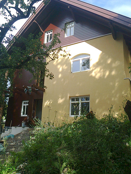 Wohngebäude (ehemaliges Ferienwohnheim) aus 1913, Mischbauweise, wurde mit Passivhauskomponenten und ökologischen Baustoffen nach einer teilweisen Entkernung komplett saniert, sowie durch einen ehemaligen Balkon um 8 m2 Wohnraum vergrössert.