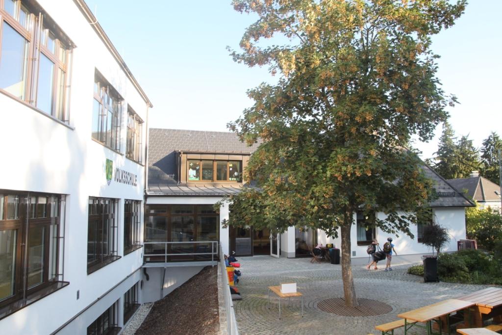 Das gegenständige Gebäude wurde im Jahr 1984 erbaut und wird als Volksschule und Kindergarten genutzt. Im Zuge der Mustersanierung wurden folgende Maßnahmen ergriffen: Dämmung der Fassade, Kellerdecke, Dachböden, Fußböden und Flachdächer sowie ein Tausch von Fenster und Türen. Desweiteren wurde die Ölheizung durch eine Pelletsheizung ersetzt. Auch die Regelung der Heizung wurde erneuert. Eine neue Lüftungsanlage mit WRG versorgt den Turnsaal, die Klassenräume und den Kindergarten mit Frischluft. Für den Sonnenschutz wurden an den Fenstern elektrisch betriebene Raffstores angebracht. Auf dem West- und Ostdach des Gebäudes wurde eine Photovoltaikanlage mit einer Gesamtleistung von 30 kWp errichtet, die einen Großteil des Strombedarfs deckt. Es werden überwiegend Dämmstoffe mit dem Österreichischen Umweltzeichen eingesetzt. Außerdem wird bei der kompletten Elektroinstallation auf PVC-Freiheit geachtet.