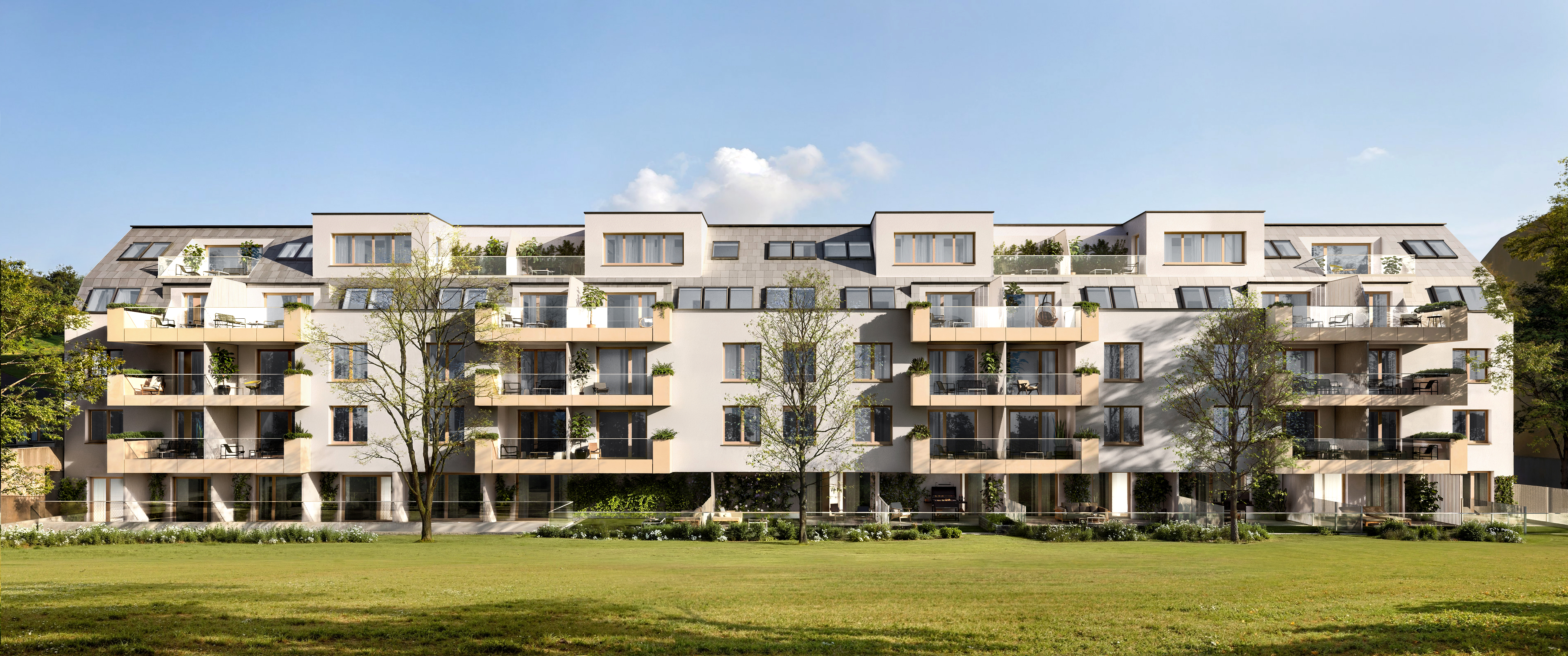 Das kompakte, voll unterkellerte Wohnhaus wird in Stahlbetonmassivbauweise ausgeführt und umfasst sechs Geschosse: ein Untergeschoss, ein Erdgeschoss, das 1. und 2. Obergeschoss sowie das 1. und 2. Dachgeschoss. Alle Wohnungen verfügen über einen eigenen Außenbereich – von Terrassen und Gärten bis hin zu Balkonen, Loggien oder Dachterrassen.