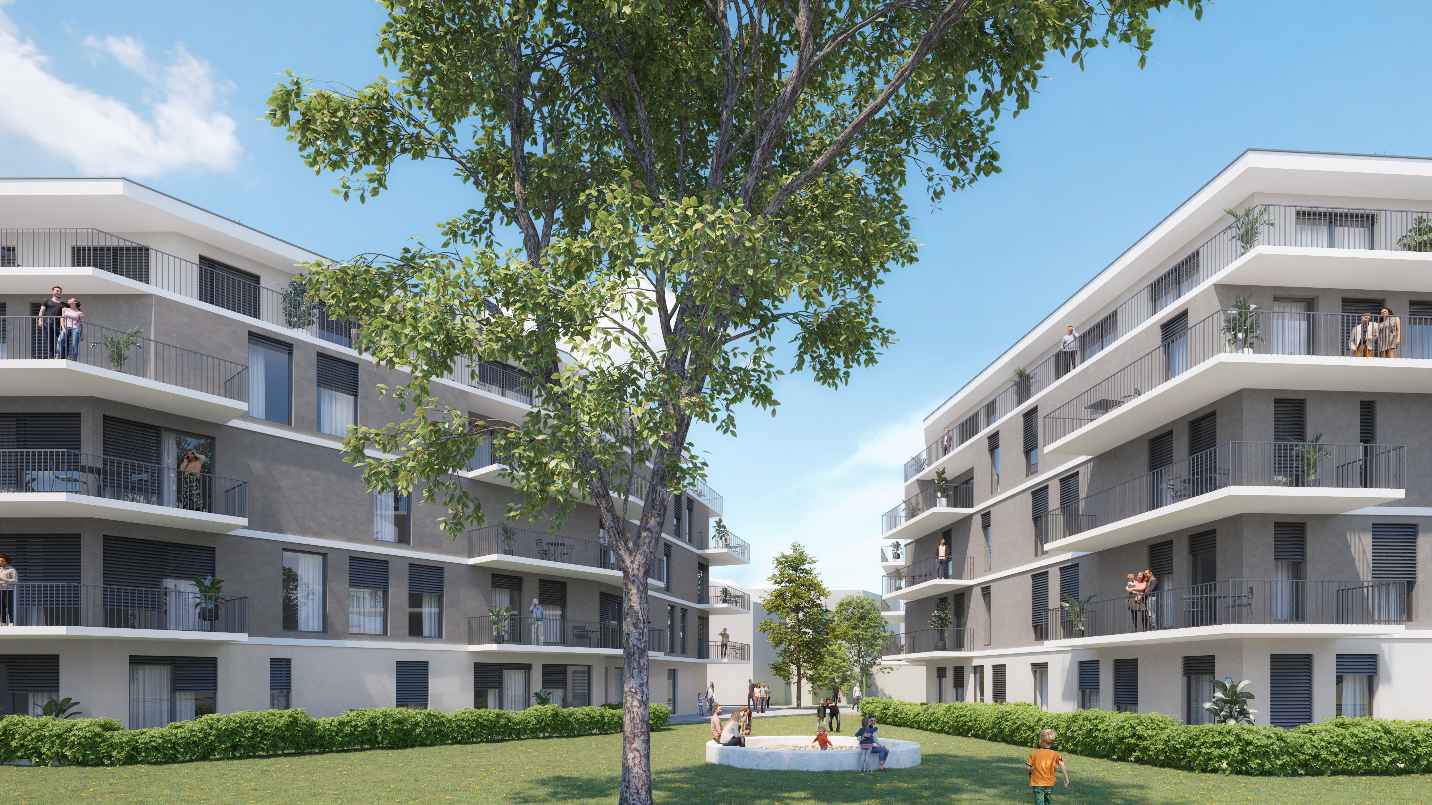 In unmittelbarer Nähe zur Straßenbahnhaltestelle Brauhaus Puntigam in Graz entstehen rund 60 Wohnungen inklusive Tiefgaragenplätzen.
