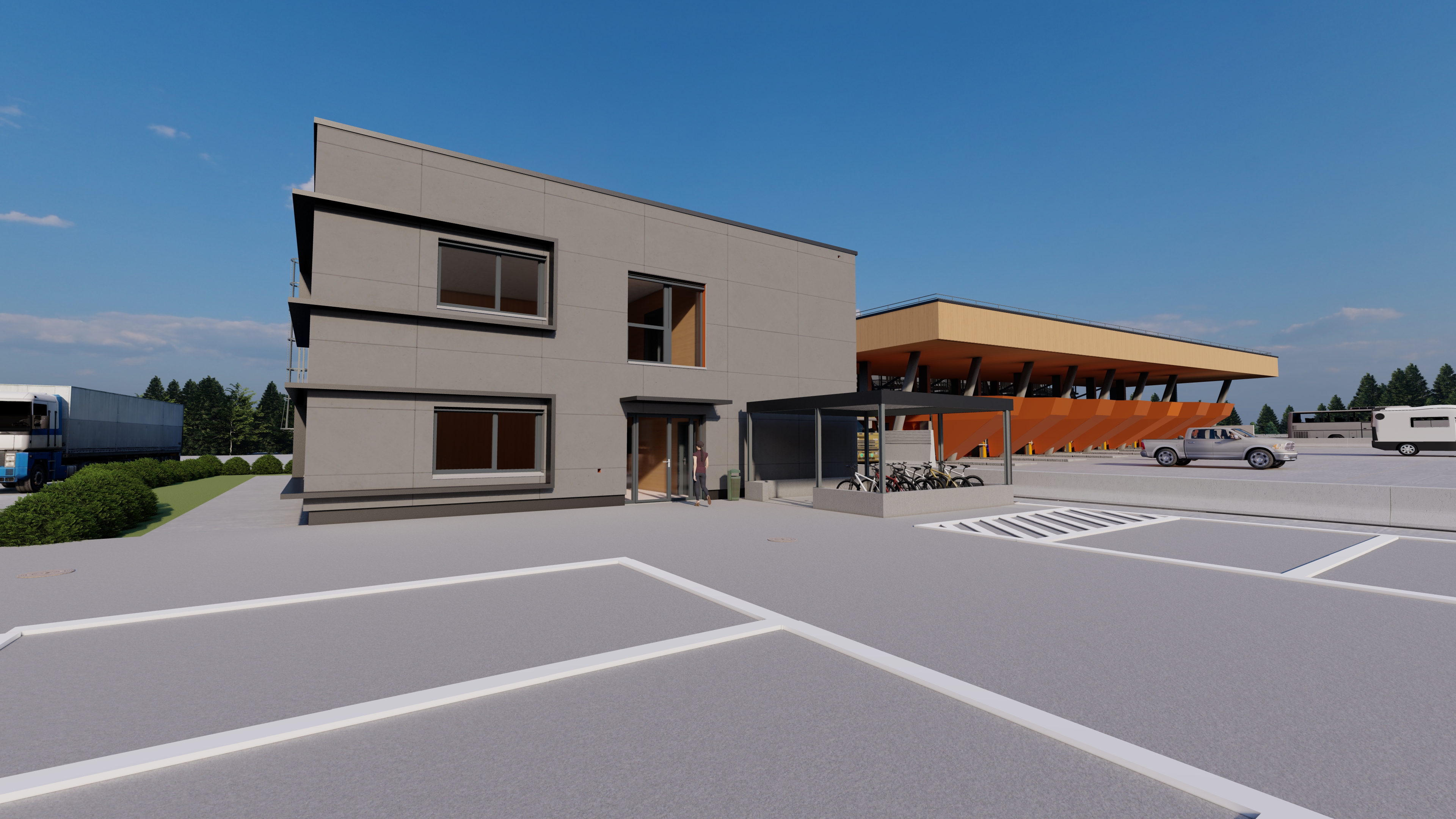 Die Hauptmautstelle (HMS) Rosenbach wird aufgrund der Erweiterung des Karawankentunnels an der A11 neu errichtet. Das Projekt umfasst zwei Hauptteile: ein Verwaltungsgebäude und eine Mautspange mit einem Flugdach über neun Fahrspuren. Es ist barrierefrei, energieeffizient und nachhaltig konzipiert. Das Verwaltungsgebäude soll zwei Obergeschoße und ein Kellergeschoß haben. Die Tragstruktur ist aus Stahlbeton bis zur Oberkante Parapet im Erdgeschoß und darüber aus Brettsperrholz-Elementen konzipiert. Neben Büros und Technikräumen soll es auch einen Verkaufsraum und Mitarbeiterbereiche bieten. Das Gebäude soll per Auto und Fahrrad erreichbar sein.