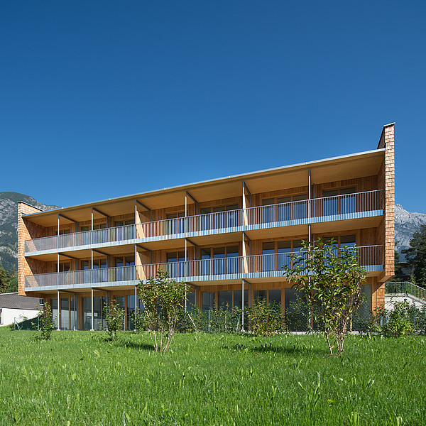 Wohnbau in Passivhausbauweise mit 23 Mietwohnungen und einer Tagesheimstätte. Mischbauweise mit hohem Holzanteil. Das gesamte Gebäude ist mit einer Komfortlüftung ausgestattet. Die Beheizung und die WW-Bereitung des Objektes erfolgt mittels einer Pelletsanlage und einer thermischen Solaranlage.