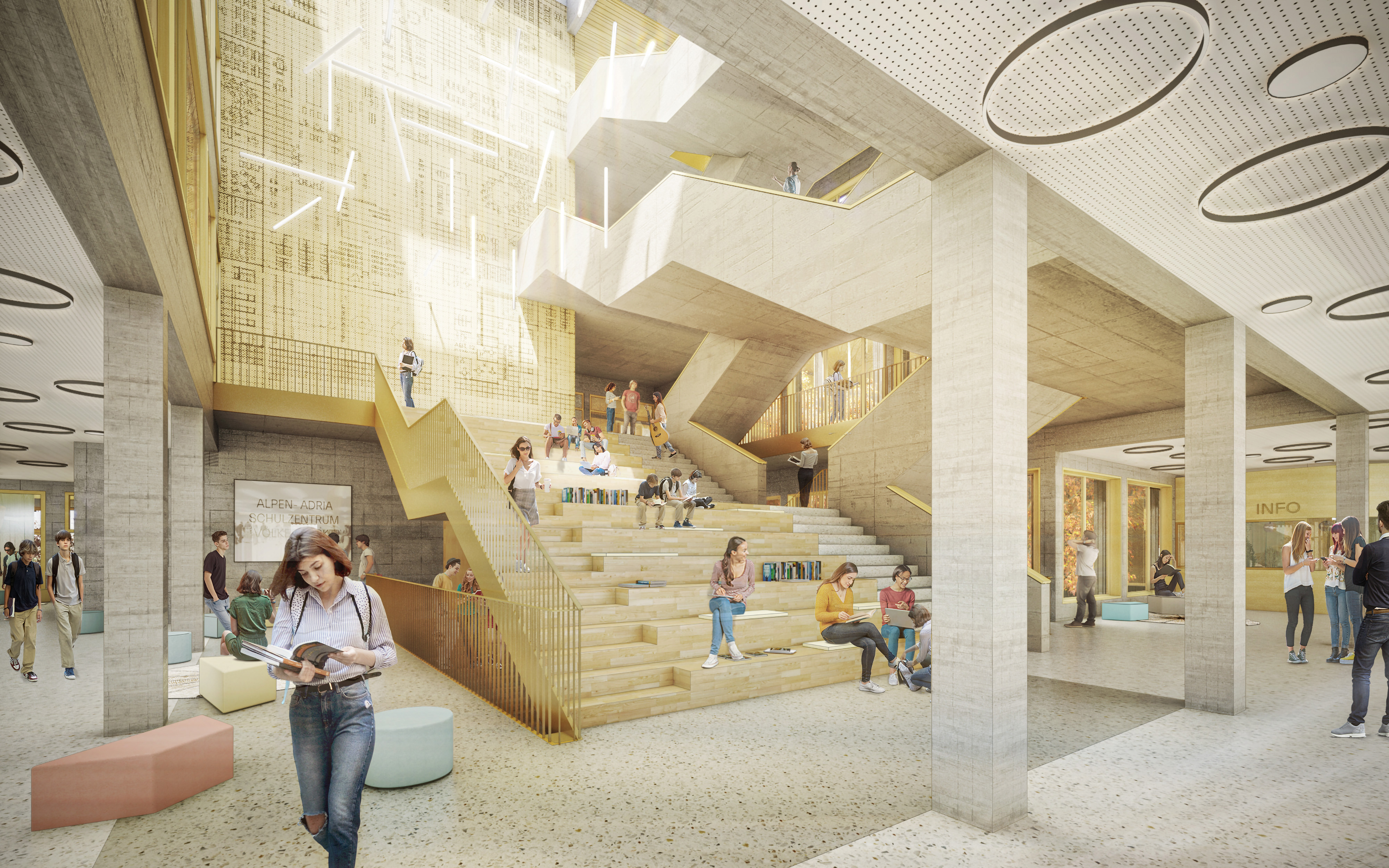 Neubau des Alpen-Adria-Schulzentrums in Völkermarkt mit 38 Klassen (BG, BRG und HAK) und einer Doppelsporthalle.