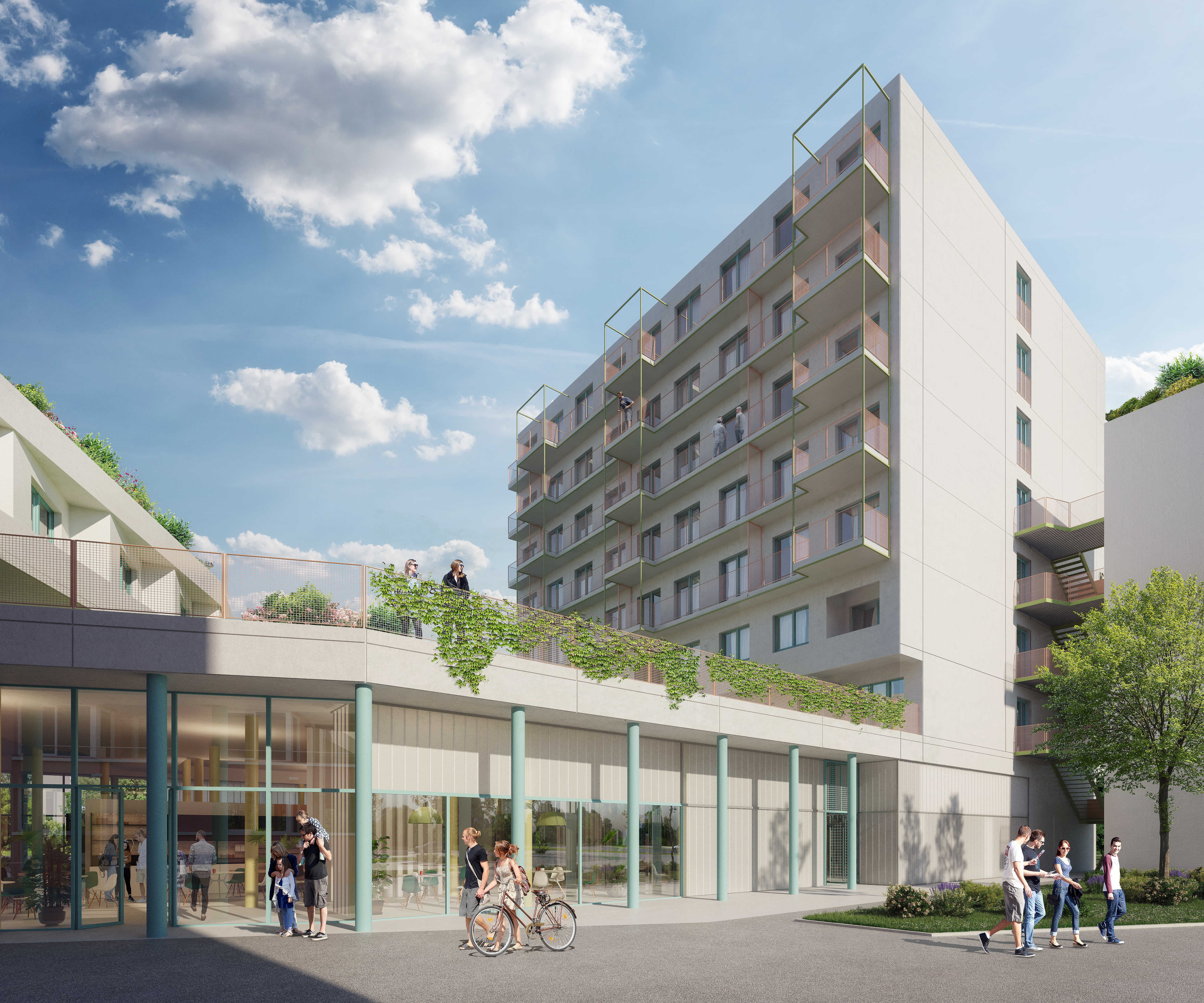 Die Familienwohnbau errichtet unter Zuhilfenahme von Wohnbau-Förderungsmitteln in 1210 Wien in der Simone-Veil-Gasse 14 und Dückegasse 22, eine Wohnhausanlage in Niedrigenergie – Bauweise, bestehend aus 52 Wohnungen, 1 Atelier und 5 Gewerbeeinheiten (Gastronomie und Verkaufsstätte). Ein besonderer Schwerpunkt wird auch auf die Bauökologie für einen schadstoffarmen Innenraum gelegt. Die eingesetzten Bauprodukte werden durch einen externen Bauökologiekonsulten vor Ausführung geprüft und während der Bauphase vor Ort kontrolliert. Die erfolgreiche Umsetzung wird abschließend durch Innenraumraumluftmessungen dokumentiert.