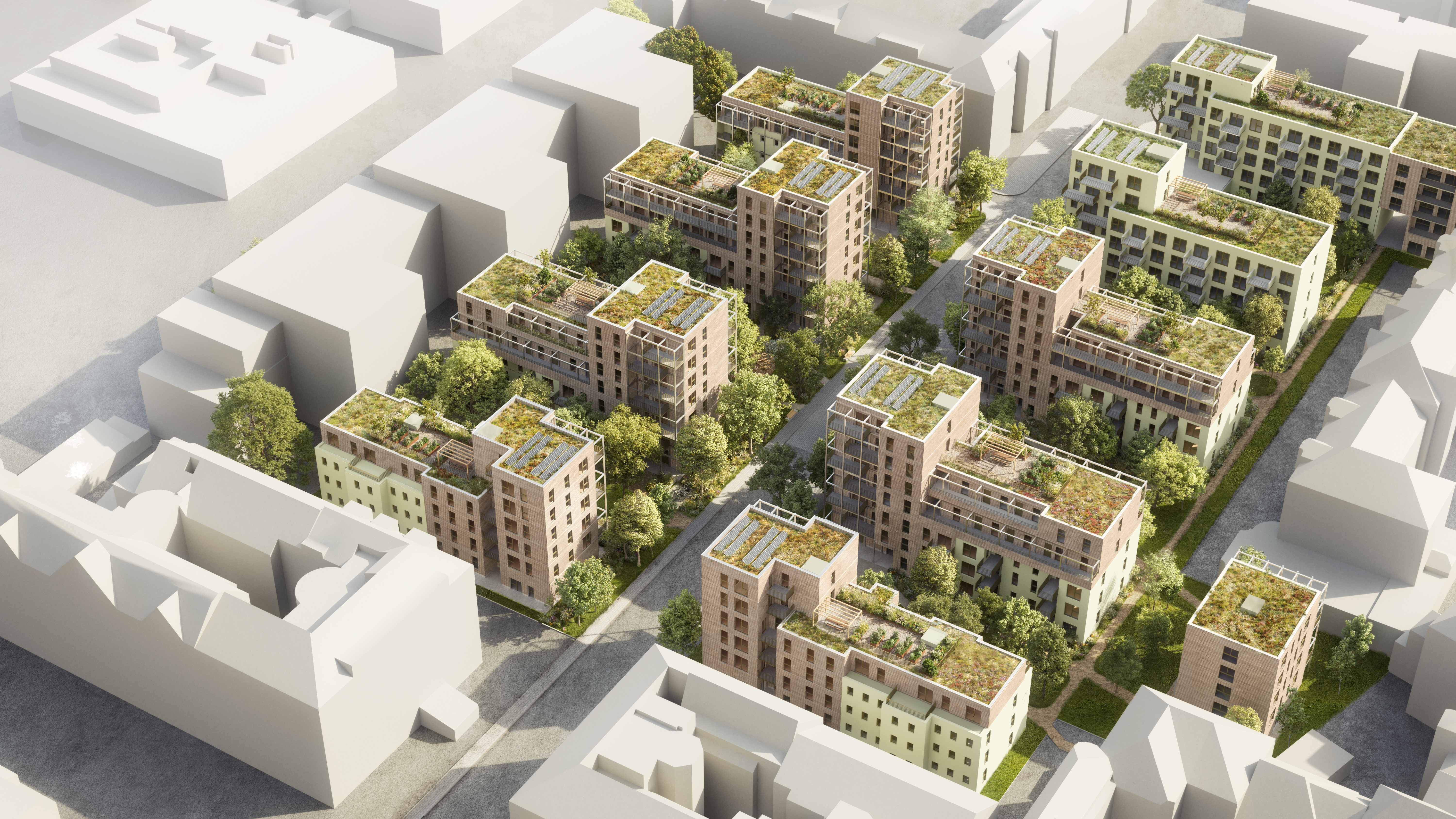 Die Quartiersentwicklung Baumstadt-Floridsdorf ist bemüht darum, ressourcenschonende, nachhaltige und ökologische Baumaßnahmen zu setzen. So bleibt vom Gebäudebestand mehr als 50 Prozent bestehen und diese Gebäudeteile werden ressourcenschonend instandgesetzt. Um die thermischen Maßnahmen zu erreichen, werden die Bestandsgebäude gedämmt und erhalten neue Fenster mit Dreifachverglasung. Der Zubau bzw. die Aufstockung erfolgt in Holz-Hybridbauweise. So wird beim Zubau die Tragkonstruktion in Stahlbeton hergestellt, aber alle Außenwände als Holzriegelwände mit Mineralwolldämmung und einer sichtbaren Holzfassade hergestellt. Wie der Name dieser Quartiersentwicklung schon sagt, wird auf die Außenanlagen besonders viel Wert gelegt. So werden alle Dächer extensiv bzw. intensiv begrünt.