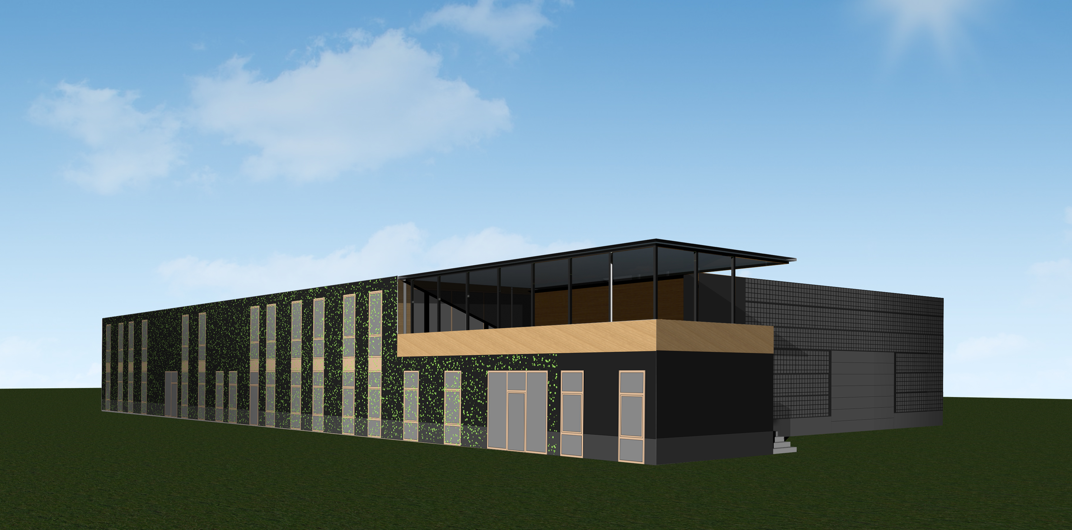 Die Besonderheiten des Bürogebäudes der Firma CN Installationen: Es handelt sich um einen reinen zweigeschossigen Holzbau, Dach und Fassadenflächen werden maximal mit PV ausgestattet, was das Gebäude zu einem energieautarken Plus-Energiegebäude macht, eine Verbesserung des Mikroklimas wird außerdem durch die Fassaden- und Dachbegrünung erreicht.