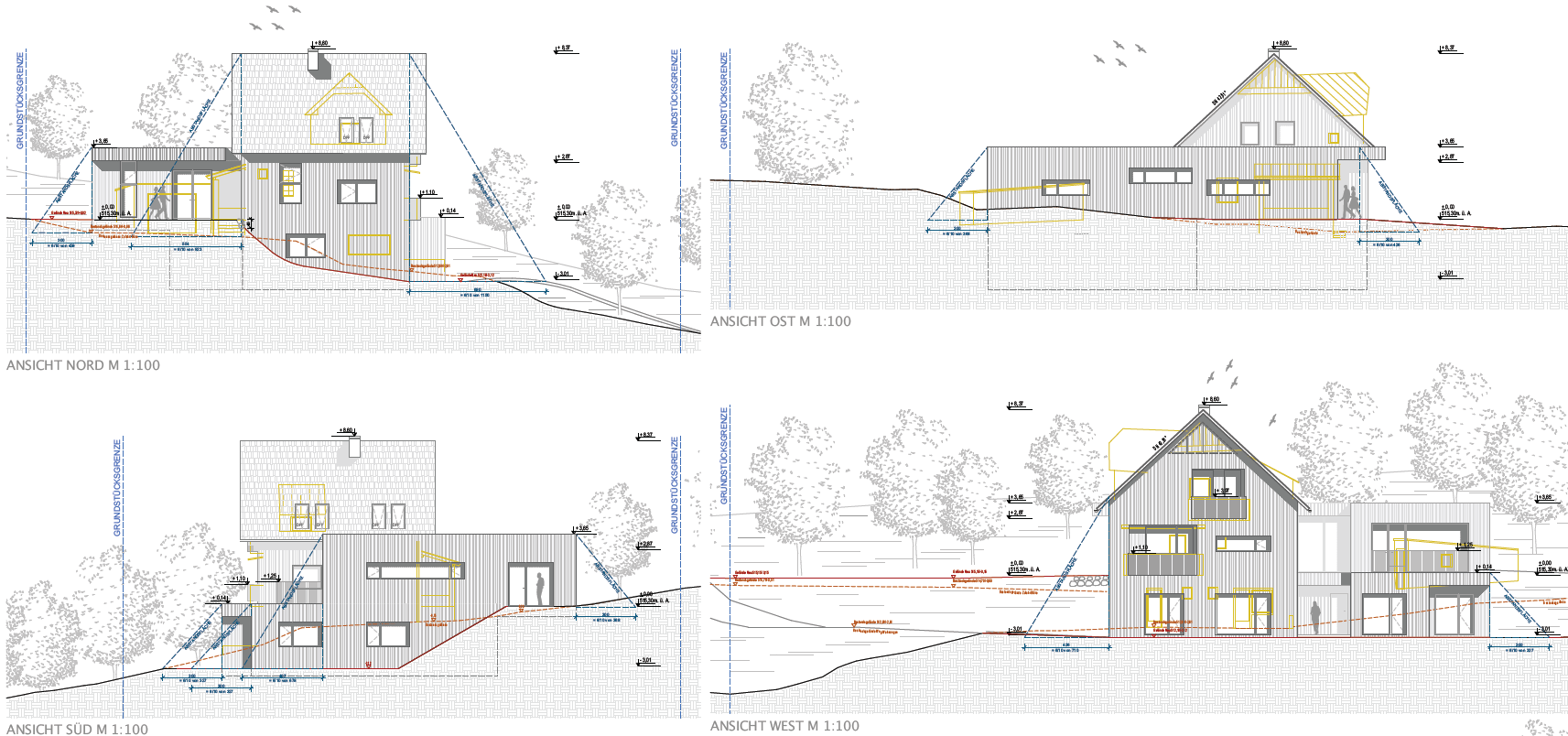 Die Sanierung des Altbestandes (Holzbau 1948) mit Umbau in Büroflächen, sowie Errichtung eines Zubaus zur Erweiterung um Besprechungs- und Infrastrukturräumlichkeiten wird dazu erforderlich. Im durch den in westlicher Richtung abfallenden Hang sich ergebenden Gartengeschoß wird im Bestand und im Zubau je eine Kleinwohnung untergebracht.
