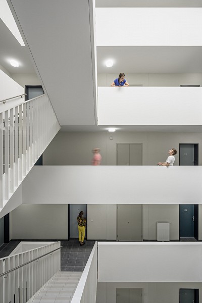Die drei 4-6-geschoßigen wohnbaugeförderten Baukörper bieten einen spannenden Nutzungsmix: Das Angebot reicht vom Baugruppenhaus, einen Laubengangtyp mit durchgesteckten Wohnungen bis zu einem Wohnheim für Kinder. Ein durchgängiges Grünraumkonzept verbindet die Baufelder zu einem schlüssigen Ganzen. Die Gebäudehülle wird zur Gänze mit hochwärmegedämmten Ziegeln errichtet und stellt somit einen wesentlichen Beitrag zum Verzicht auf einen erdölbasierten Vollwärmeschutz dar. Das Projekt zeichnet sich durch eine Vielzahl an Wohnungstypen aus (78 geförderte Mietwohnungen sowie drei Wohngemeinschaften à 8 BewohnerInnen für (schwerst-)behinderte Kinder und Jugendliche). Im Baugruppenhaus übernimmt ein 5-geschoßiges zentr. Atrium die Funktion der Erschließung als Ort der Begegnung. Dachterrassen, Gemeinschaftssauna, Vereinscafé und ein urban-gardening-Feld inmitten des Areals runden das Angebot für die Gemeinschaft ab.