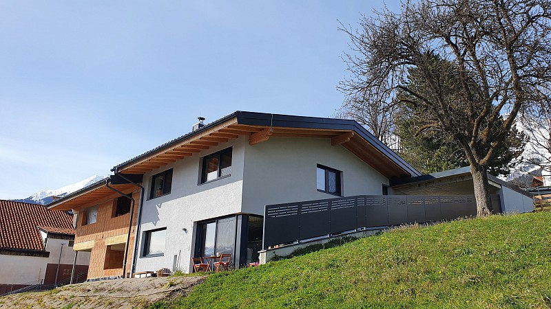 In Arzl bei Innsbruck wurde ein Doppelhaus in Massvibauweise mit sehr niedrigem Energieverbrauch und nachhaltiger Luftwärmepumpe errichtet. Die zweite Haushälfte wird erst später nach dem Verkauf des Rohbaus fertiggestellt.
