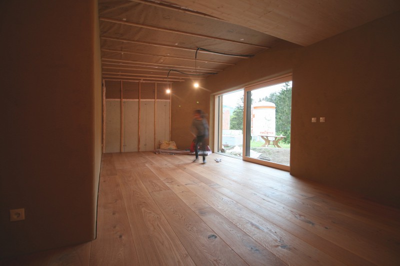 Neubau eines Einfamilienhauses in Mischbauweise (Holzriegelbau mit massiven Zwischenwänden) mit Stroh als Dämmmaterial und Lehmputz für ein gesundes Wohnklima.