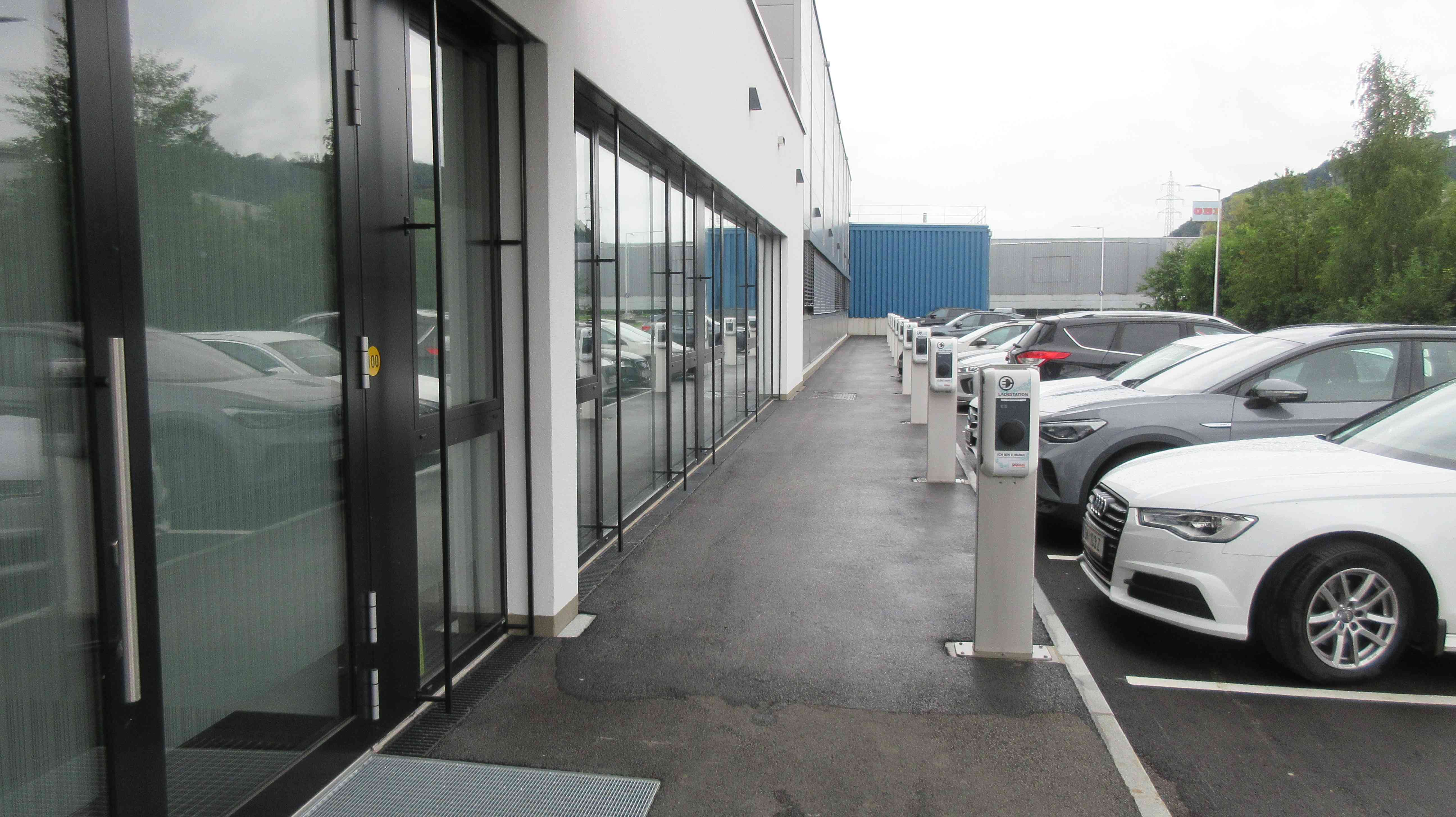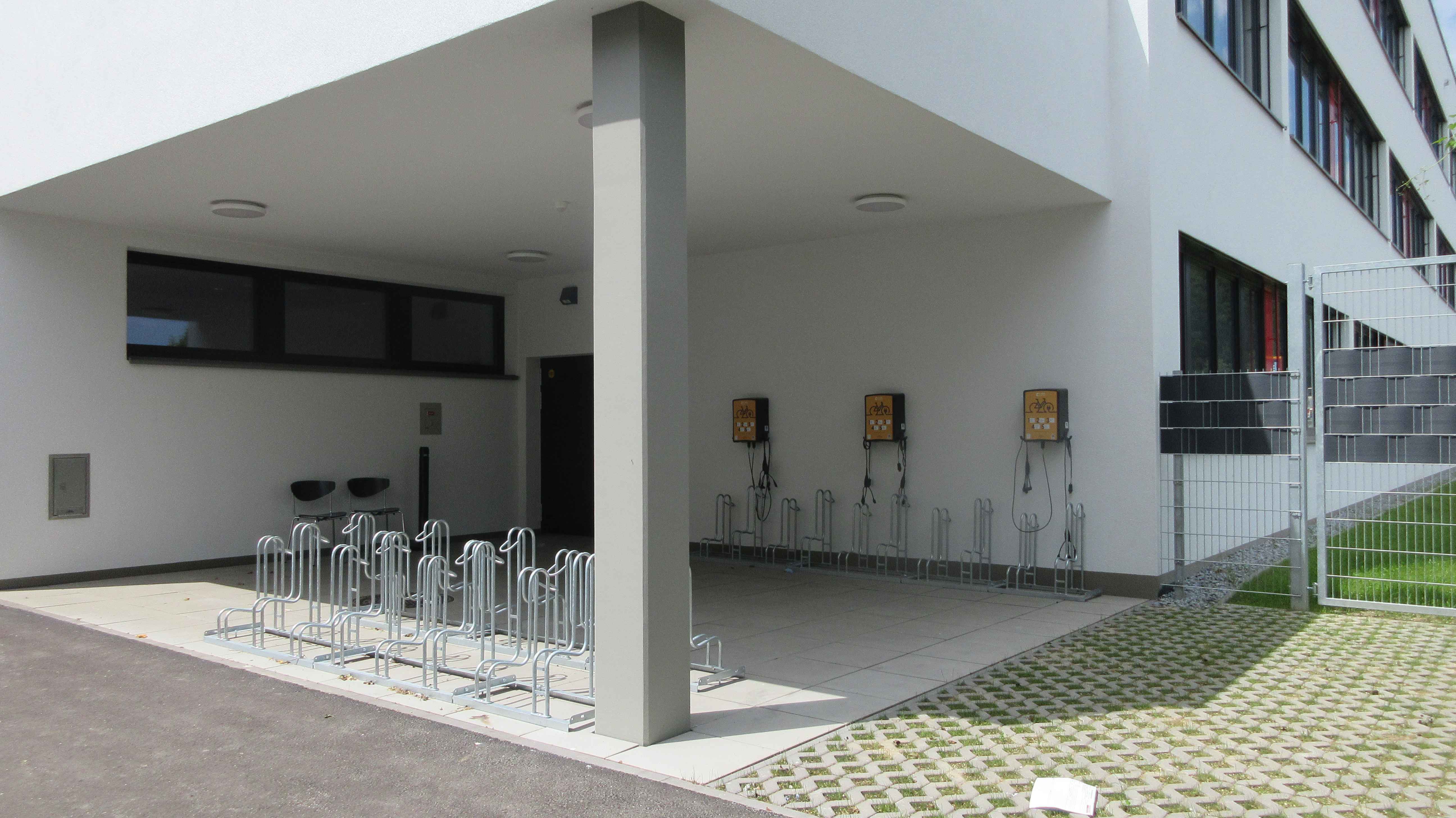 Ergänzend wurden auf dem Gelände E Tankstellen sowohl für PKW als auch für Fahrräder installiert. Damit wird eine umweltfreundliche Mobilität gefördert und komfortables Laden von Elektrofahrzeugen ermöglicht.