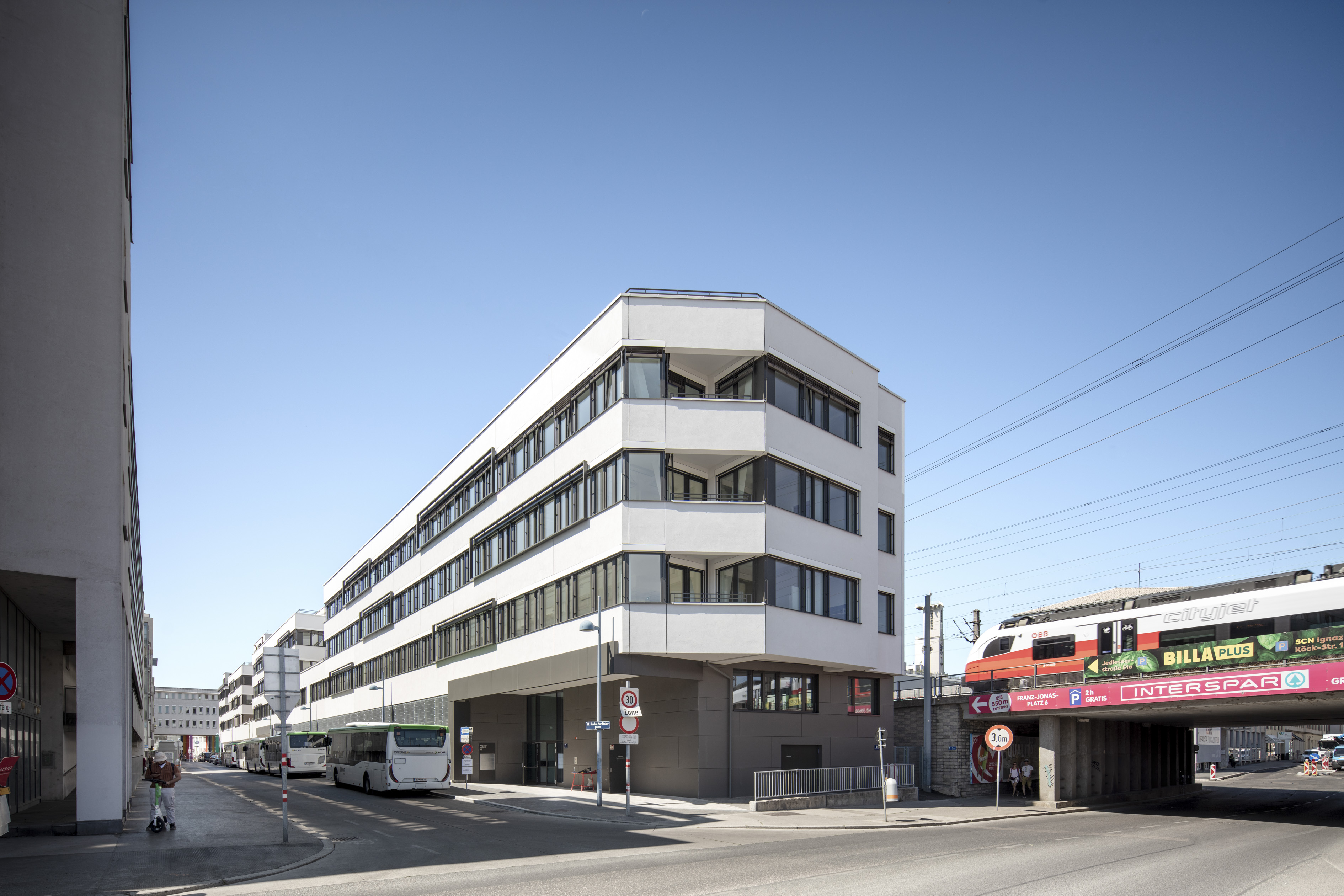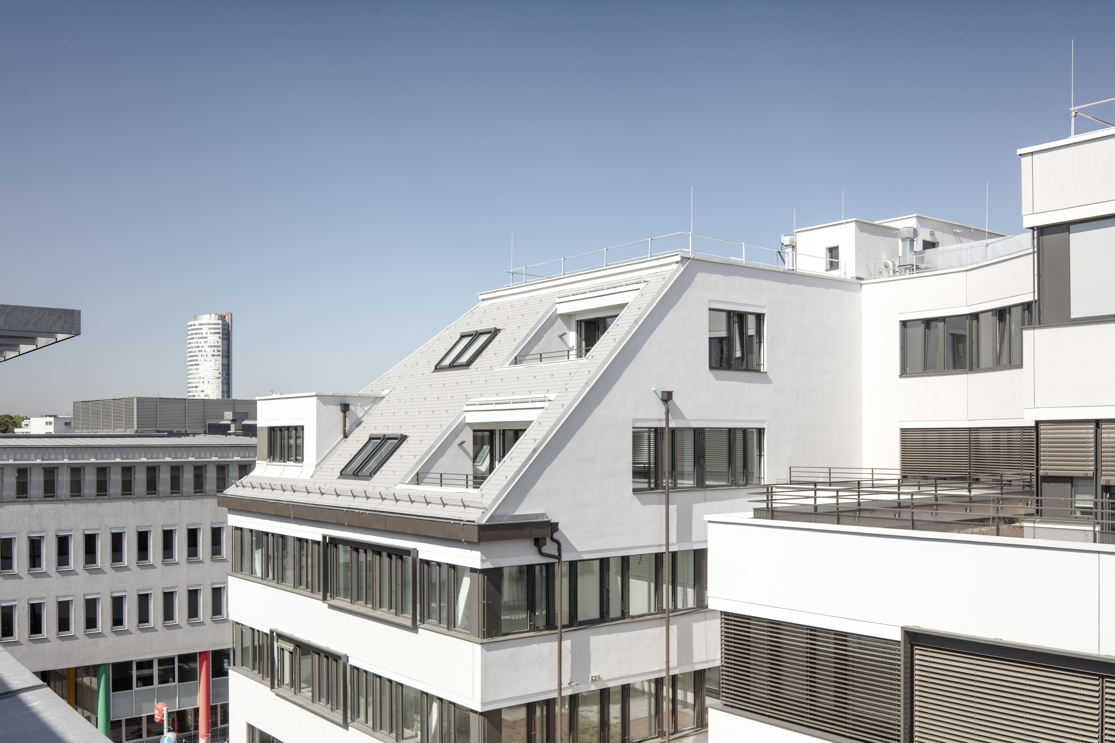 Durch die Überbauung einer bestehenden U-Bahnremise bzw. eines Parkplatzes konnte auf die zusätzliche Versiegelung von Flächen vollkommen verzichtet werden.