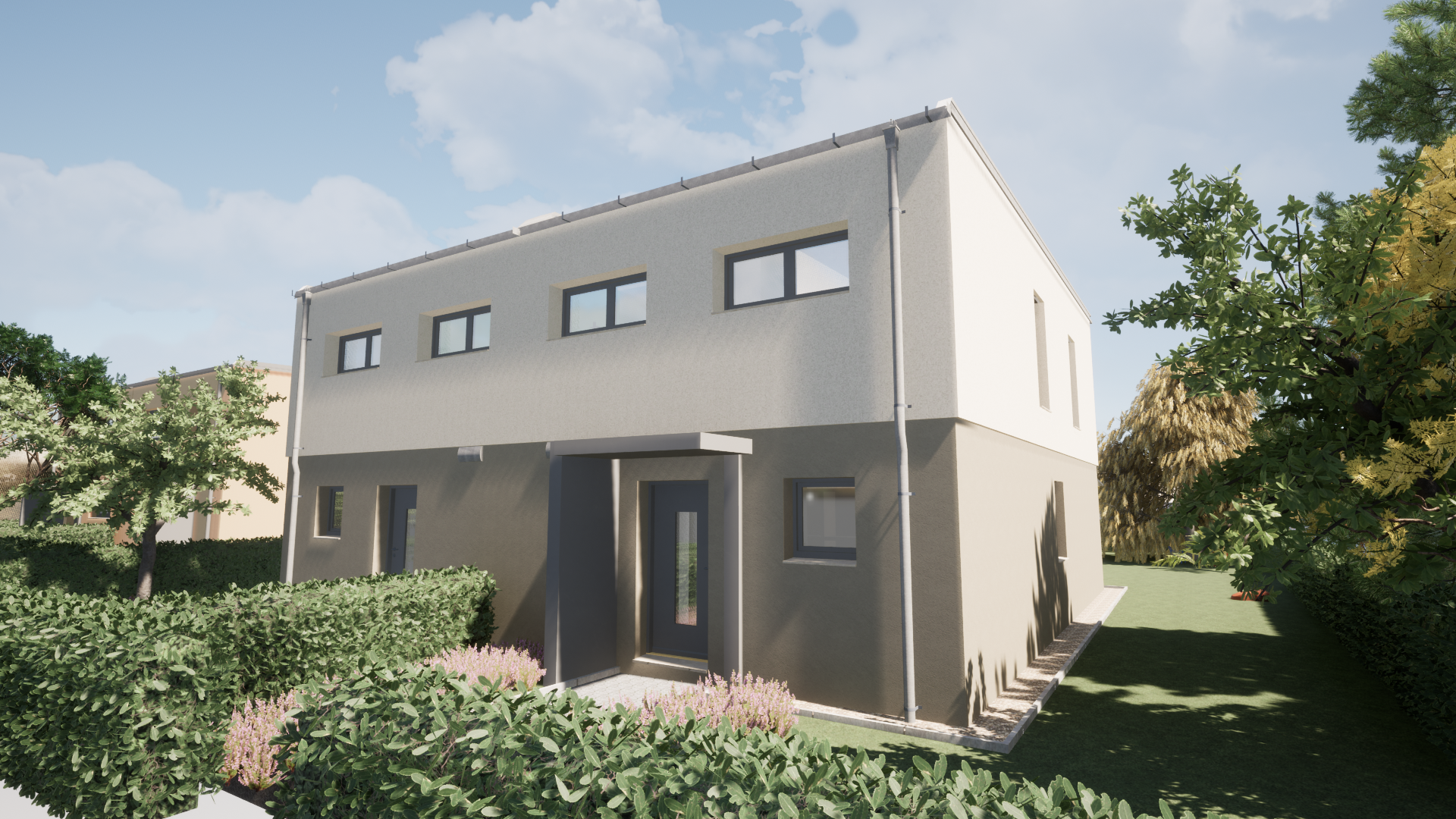 Moderne Wohnhausanlage mit 1815 m² WNF in sonniger Lage in Theresienfeld. Acht Doppelhäuser mit je 2 Einheiten bieten insgesamt 16 Wohneinheiten in Niedrigstenergiehausqualität.