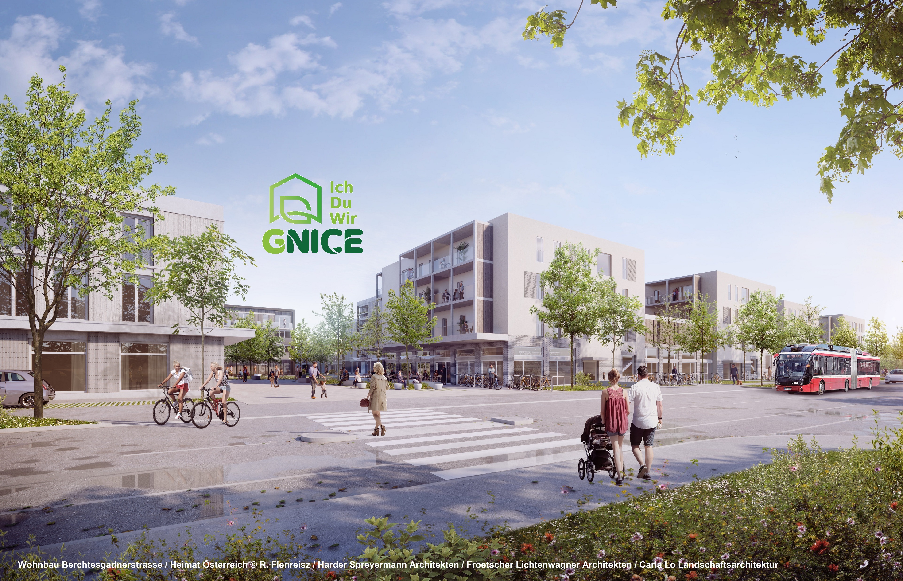 Das im Süden von Salzburg entstehende Wohnbauprojekt GNICE in der Gneisfeldstraße (Stadtteil Gneis) ist in vielerlei Hinsicht beispielgebend und zukunftsweisend. Für die Bewohner:innen bietet es eine Wohnqualität und ein Wohnerlebnis, wie es nicht leicht zu finden ist. Mit GNICE entsteht ein kleines Dorf mitten in der Stadt mit einer hervorragenden Infrastruktur. In unmittelbarer Nähe findet sich alles, was für das tägliche Leben benötigt wird. Die Innenstadt von Salzburg ist in ca. 10 Minuten erreichbar. Mit dem nahegelegenen Eichetwald liegt das Naherholungsgebiet direkt vor der Haustür. Die sonnige Lage bietet nahezu von jeder Wohnung aus einen besonders schönen Ausblick – ob in die Berge, ins Grüne oder zur Festung Hohensalzburg.