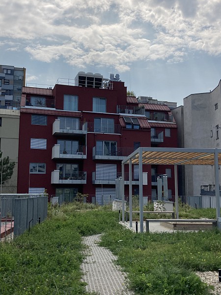 Das Projekt Green5 besteht aus einem Straßen- und Hoftrakt mit 63 Wohnungen, einem Ambulanzzentrum im Erdgeschoss und einer eigenen Tiefgarage. Die freifinanzierten Mietwohnungen mit einer Größe von 30m² bis 85m² weisen einen erhöhten Ausstattungsstandard auf. Alle Wohnungen verfügen über eigene Terrassen oder Balkone. In der Tiefgarage wurden fünf Ladestellen für E-Autos und Fahrradabstellräume mit Fahrradservicestationen umgesetzt. Die Fassade wurde als Wärmedämmverbundsystem mit Mineralwolle ausgeführt und erhielt straßenseitig partiell eine bewässerte Begrünung. Die unmittelbare Nähe zu den öffentlichen Verkehrsmitteln begünstigt den Komfort für die zukünftigen BewohnerInnen.