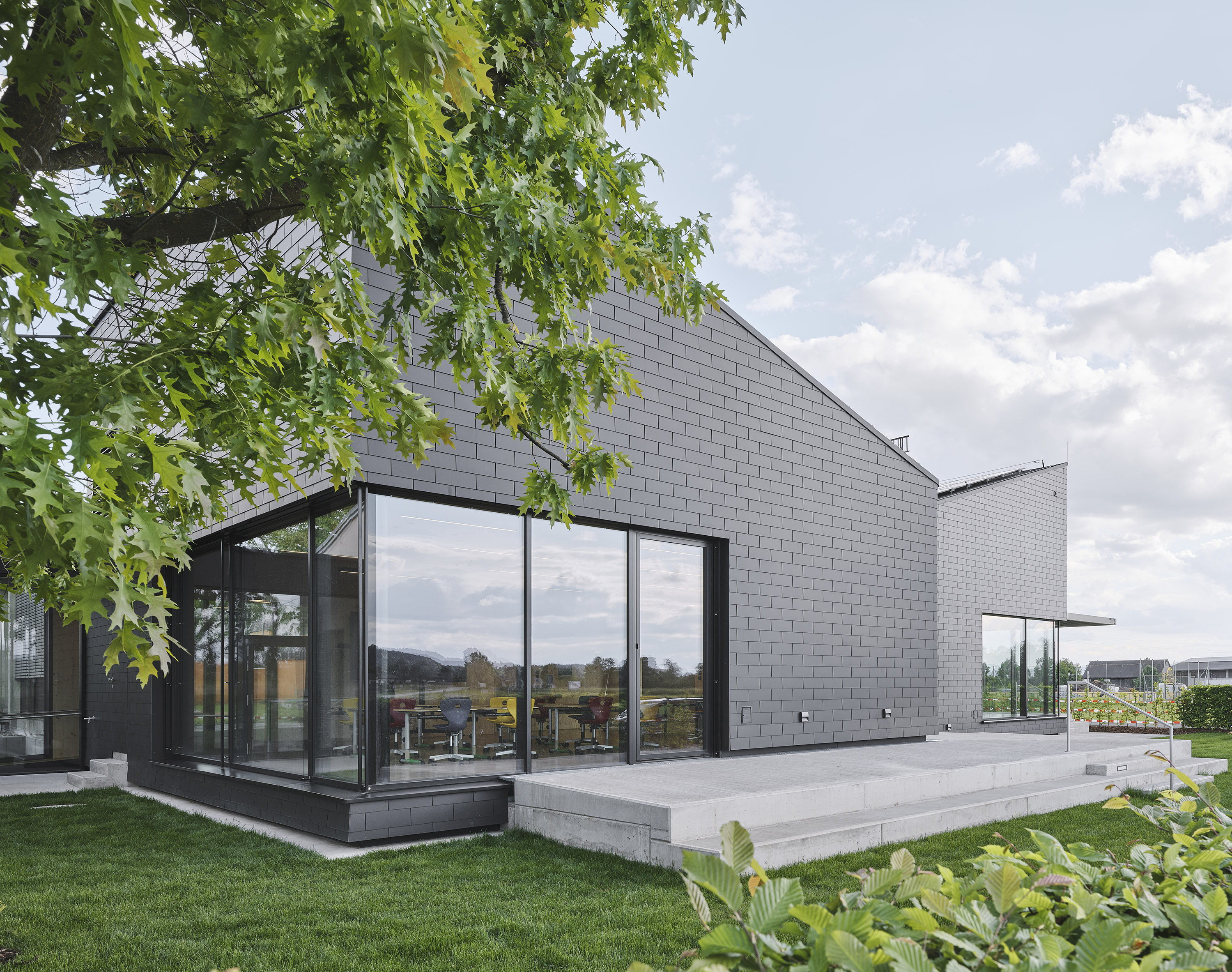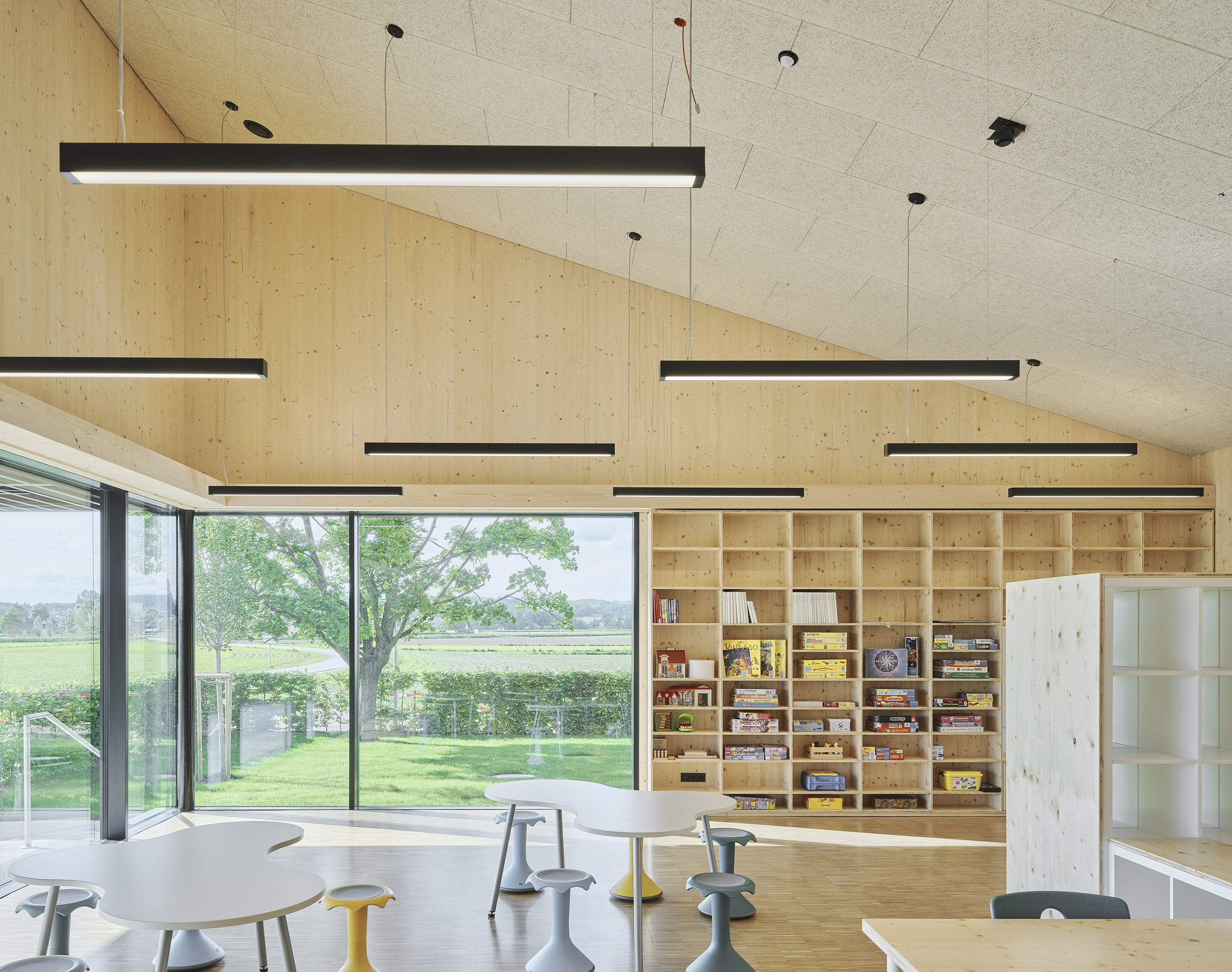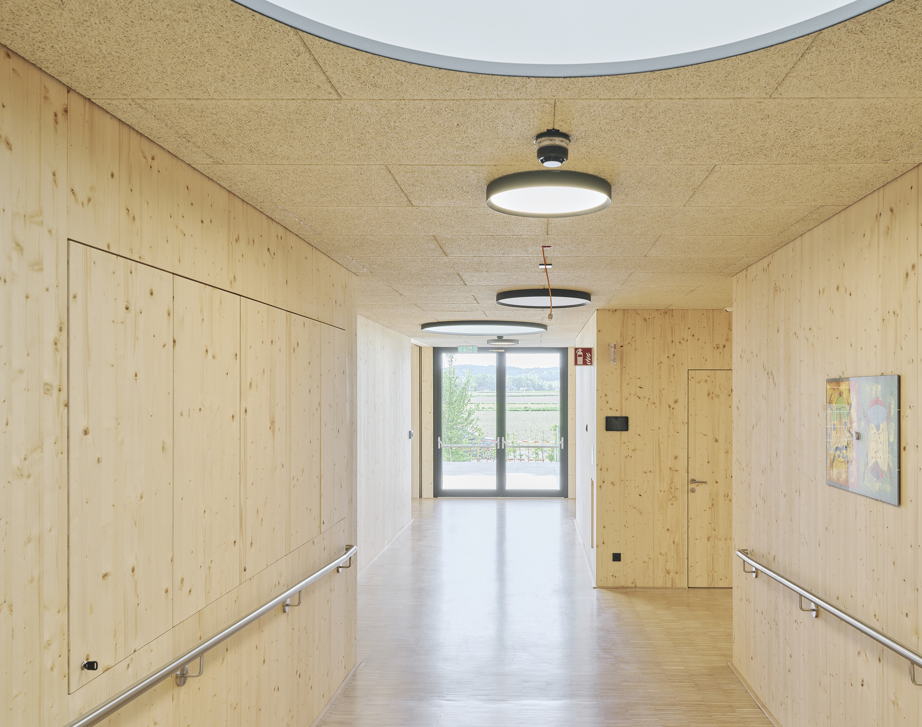 Mit dem Neubau einer Ganztagesschule (GTS) erhält die Volksschule St. Georgen an der Stiefing in der Steiermark einen hochwertigen Zubau, der sich durch ein großzügiges Raumkonzept, flexibel nutzbare Außenbereiche, nachhaltige Bauweise und Energieautarkie auszeichnet. Das Gebäude wird konstruktiv in Holz errichtet, innere Oberflächen bestehen ebenfalls aus Holz bzw. Holzwerkstoffen. Die vorgehängte Fassade hat einen sortenreinen Aufbau aus Faserzementplatten mit dahinter liegender Holzfaserdämmplatte, auch die Schrägdächer sind mit Holzfaserdämmplatte gedämmt. Die Stromversorgung erfolgt mittels PV-Modulen, die vollflächig auf den Schrägdächern verlegt sind. Heizung und Kühlung werden mittels Luftwärmepumpe und Fußbodenheizung bereitgestellt.