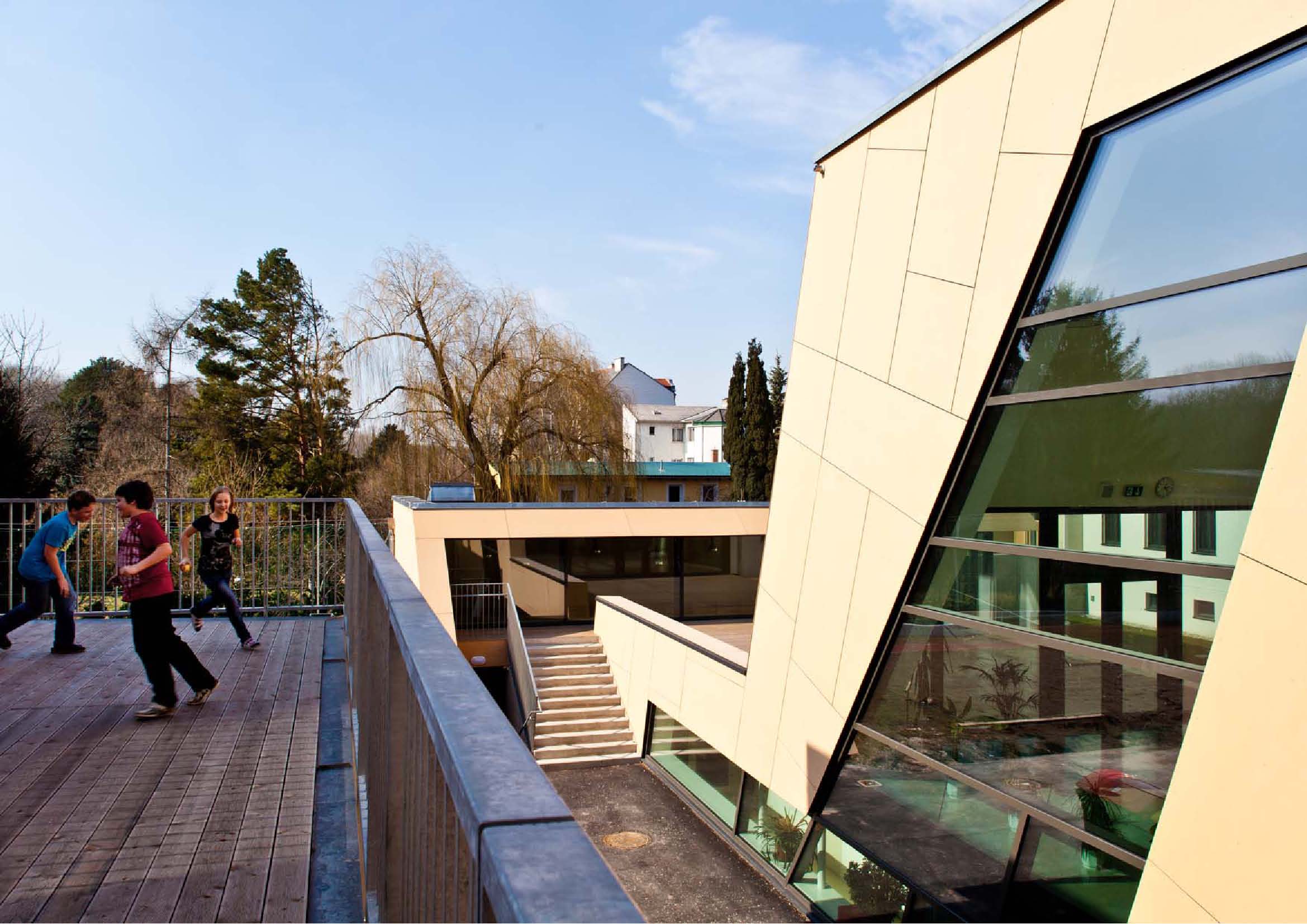 den aktuellen schulischen Ansprüchen funktionell angepaßt, thermisch saniert und um einen Zubau erweitert Die