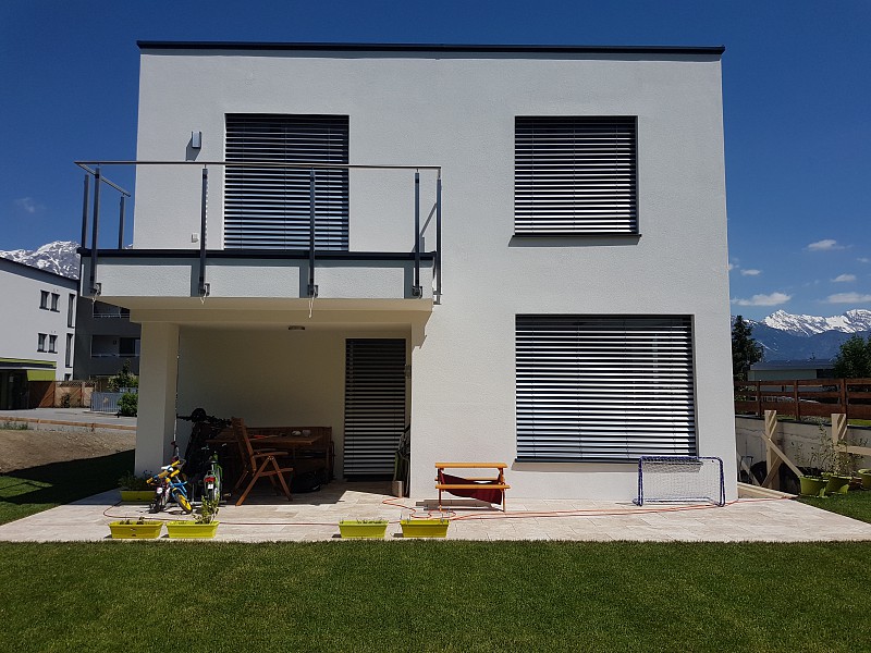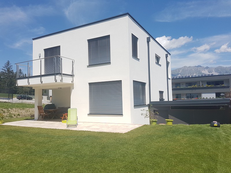Einfamilienhaus unterkellert mit Carport und Lager. Es verfügt über eine Luft-Wasser Wärmepumpe mit kontrollierter Wohnraumlüftung und Kunststoff-Alu Fenster mit Dreifachverglasung.